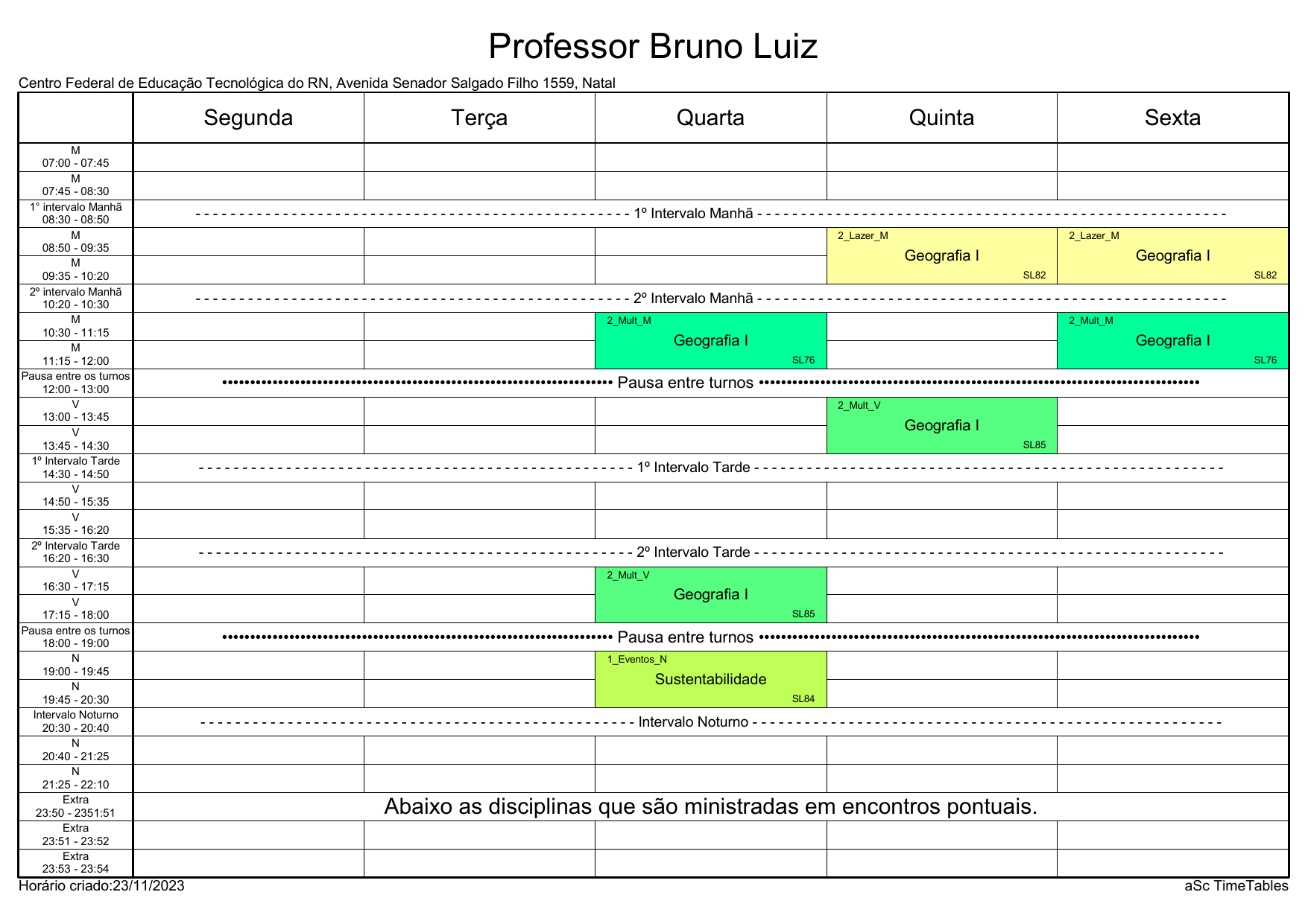 IFRN/CAL: Horário Acadêmico