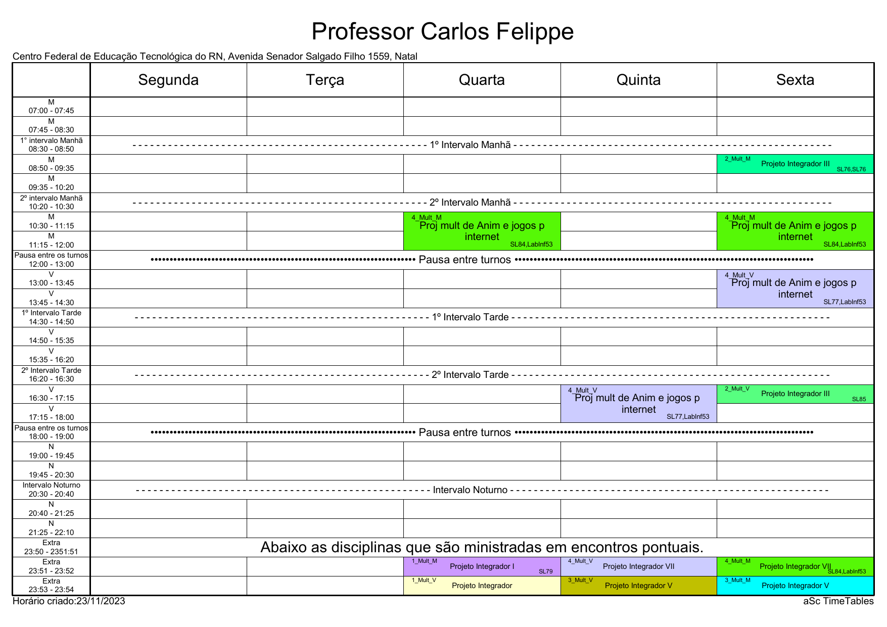 IFRN/CAL: Horário Acadêmico