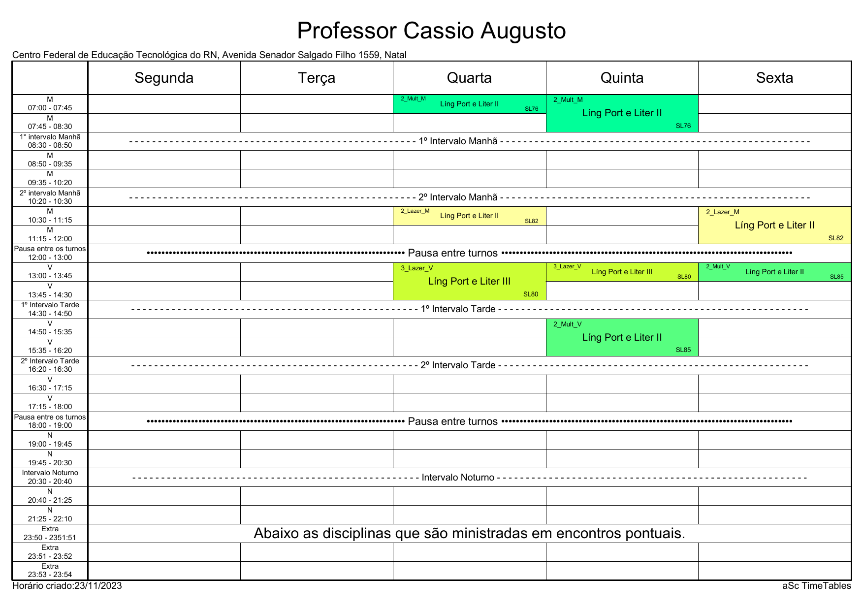IFRN/CAL: Horário Acadêmico