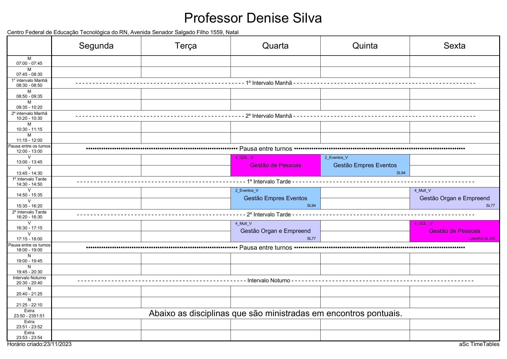 IFRN/CAL: Horário Acadêmico