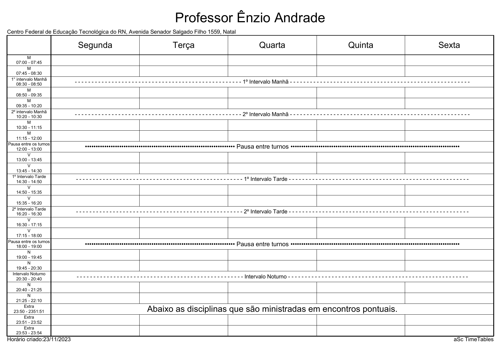 IFRN/CAL: Horário Acadêmico