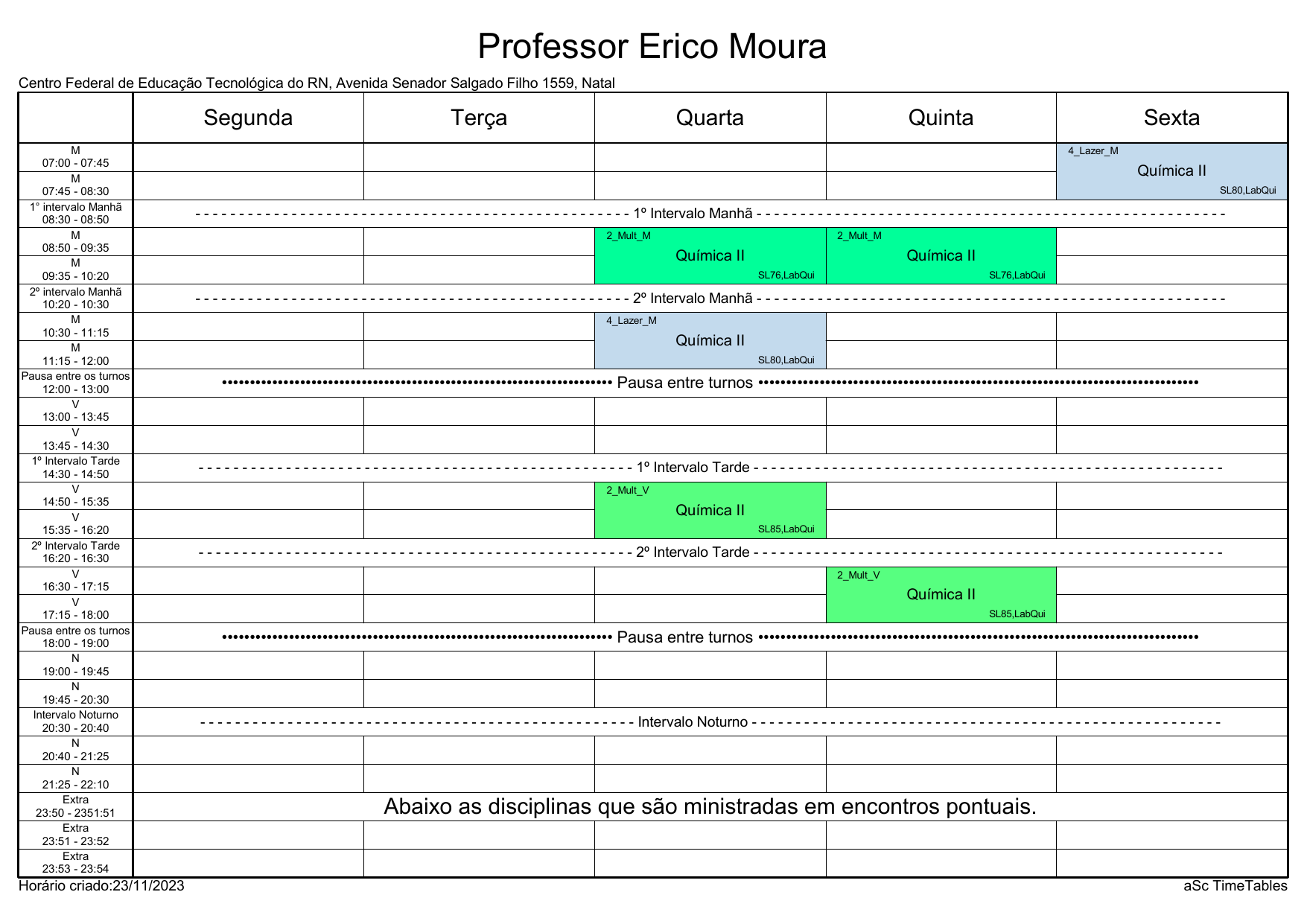 IFRN/CAL: Horário Acadêmico