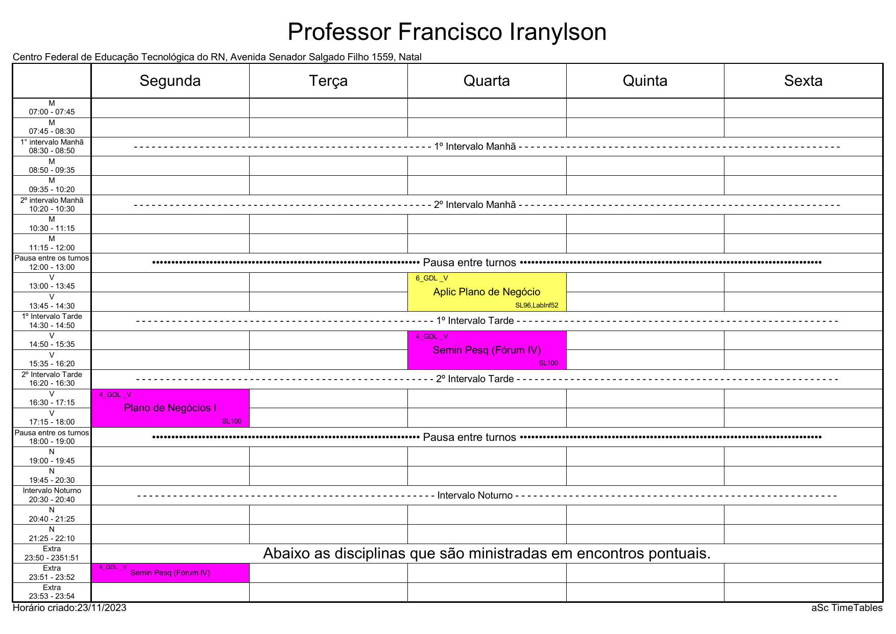 IFRN/CAL: Horário Acadêmico