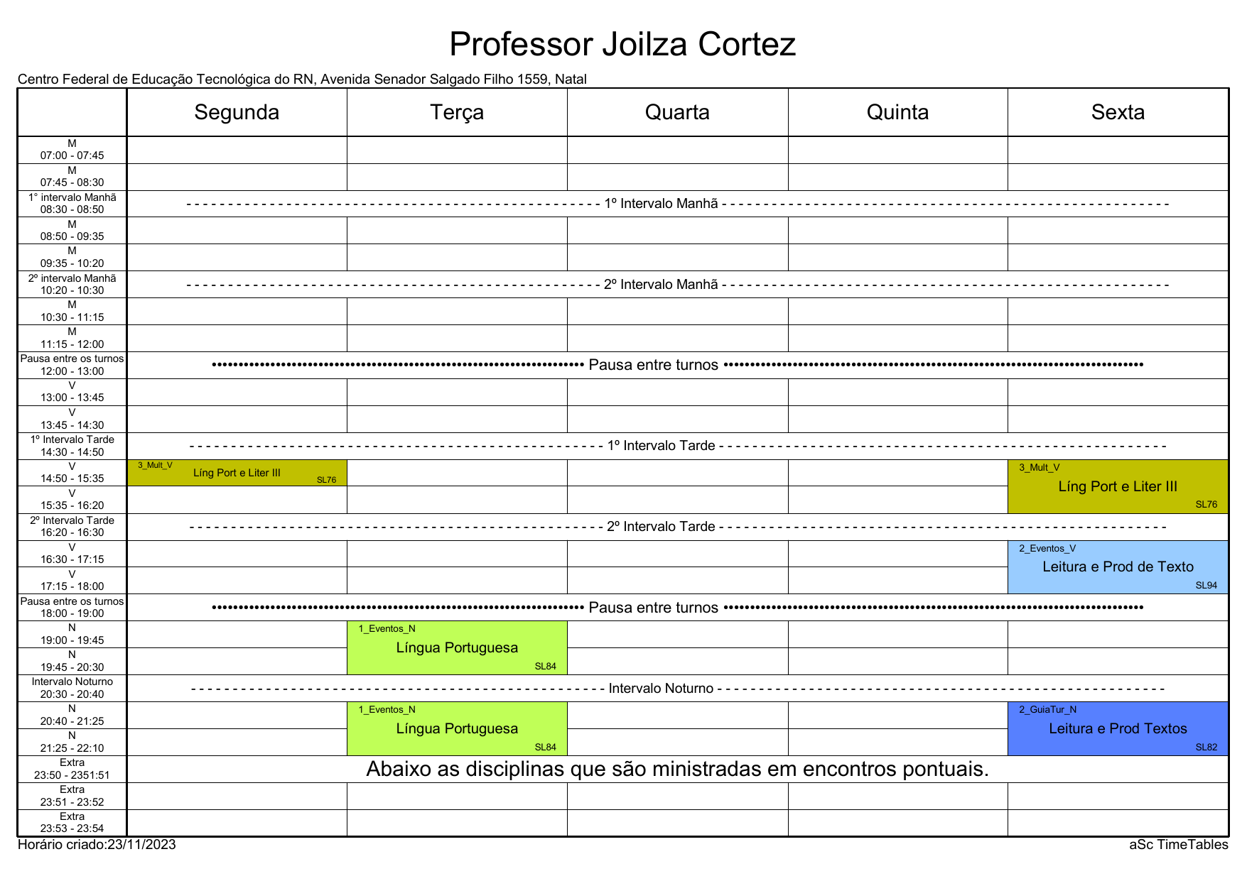 IFRN/CAL: Horário Acadêmico