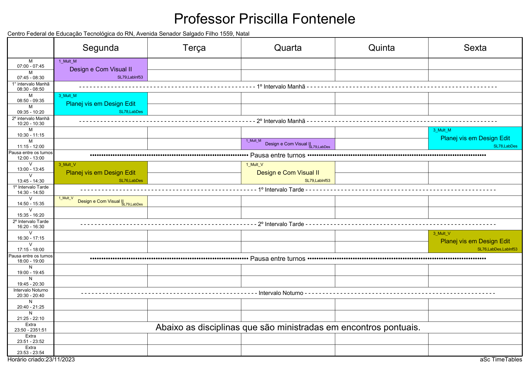 IFRN/CAL: Horário Acadêmico