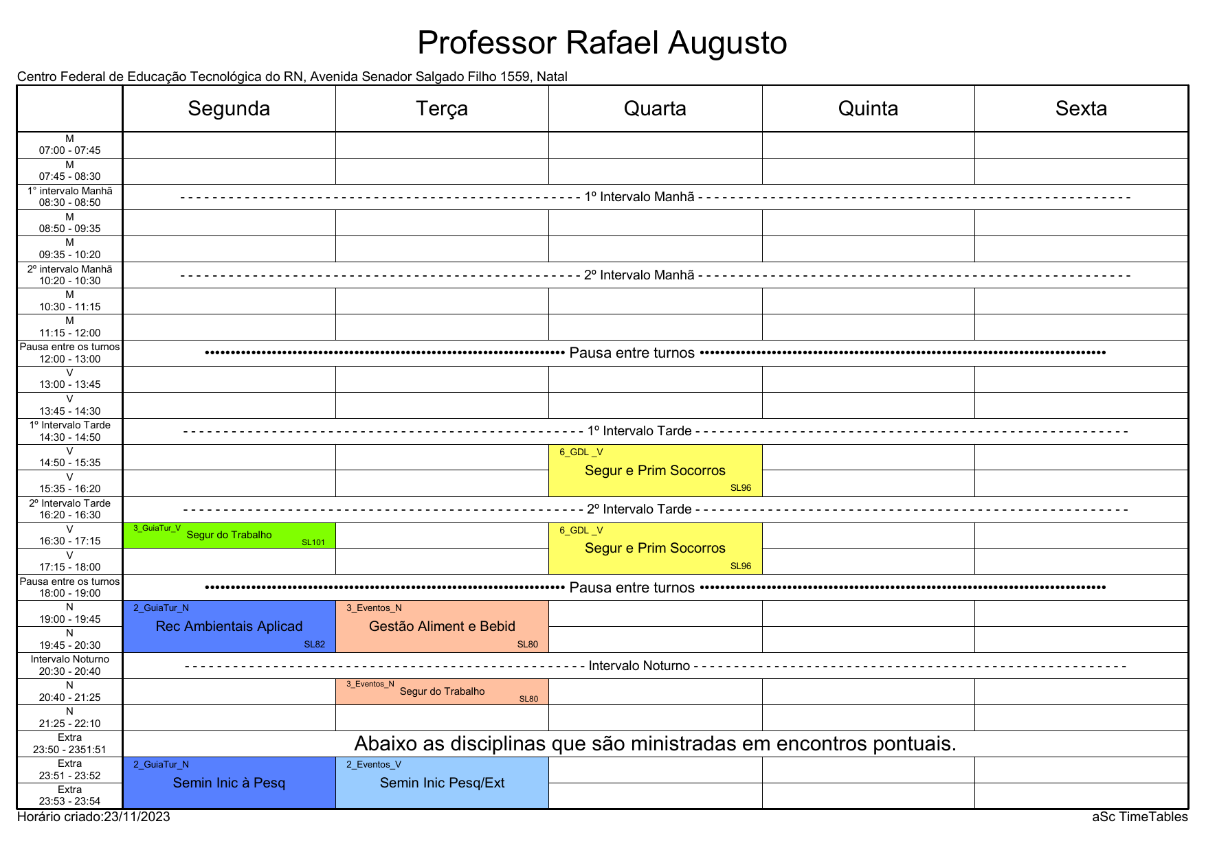 IFRN/CAL: Horário Acadêmico