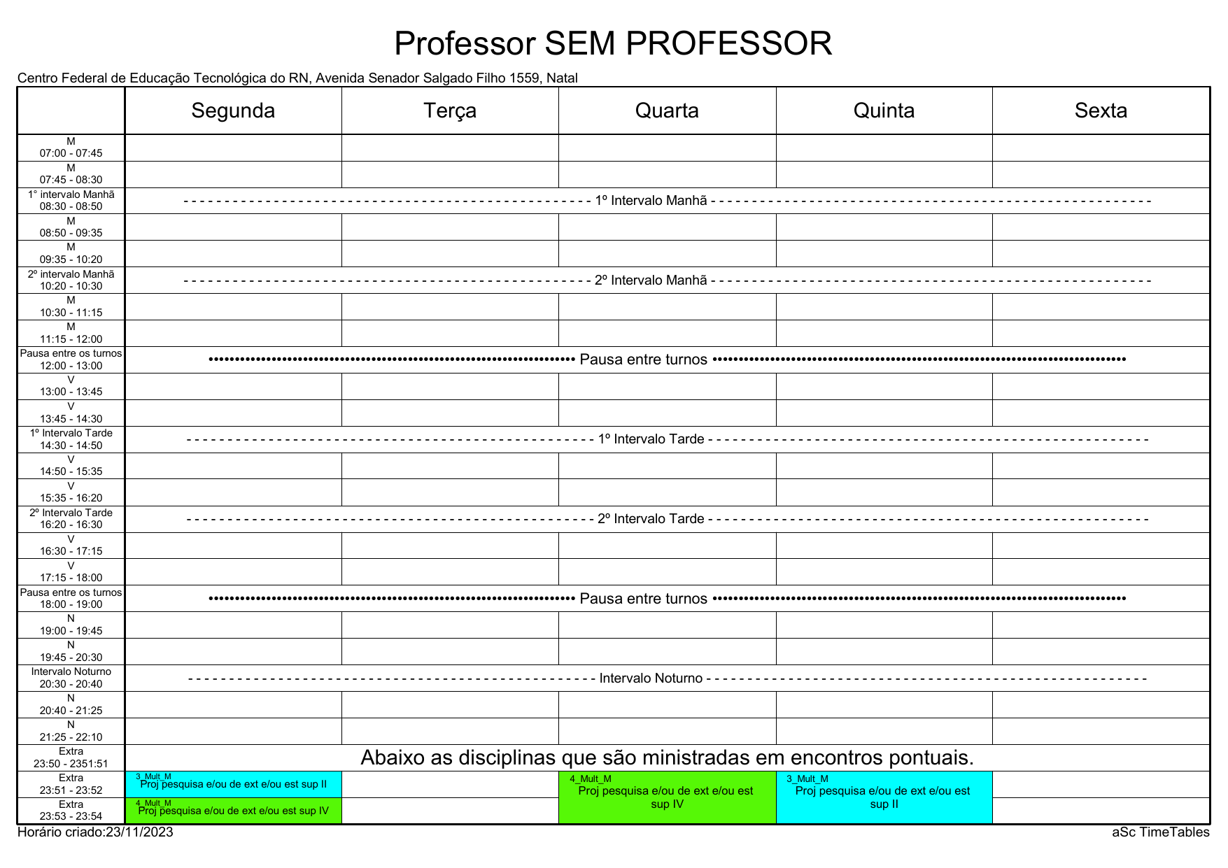 IFRN/CAL: Horário Acadêmico
