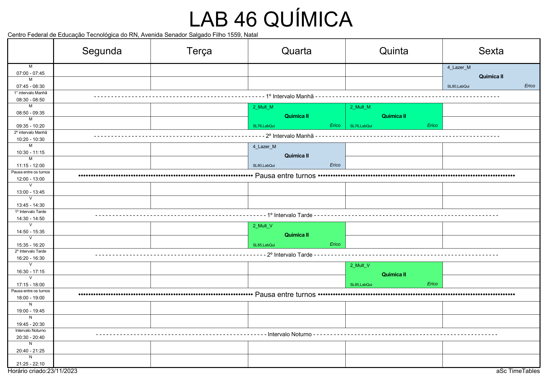 IFRN/CAL: Horário Acadêmico