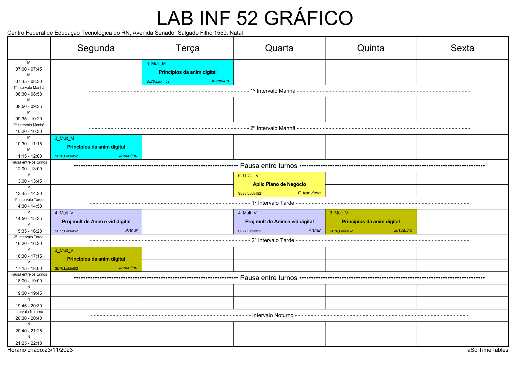 IFRN/CAL: Horário Acadêmico