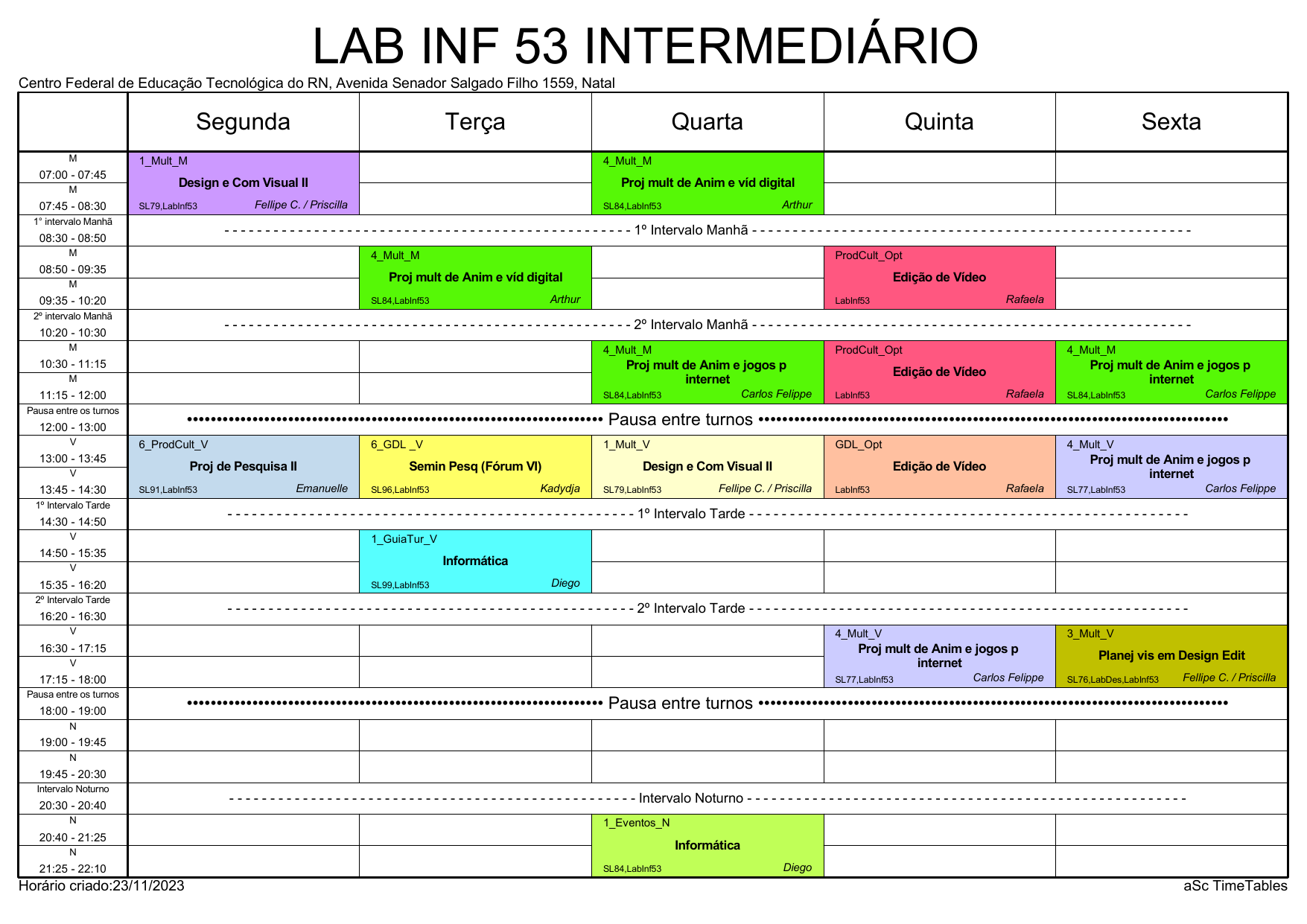 IFRN/CAL: Horário Acadêmico