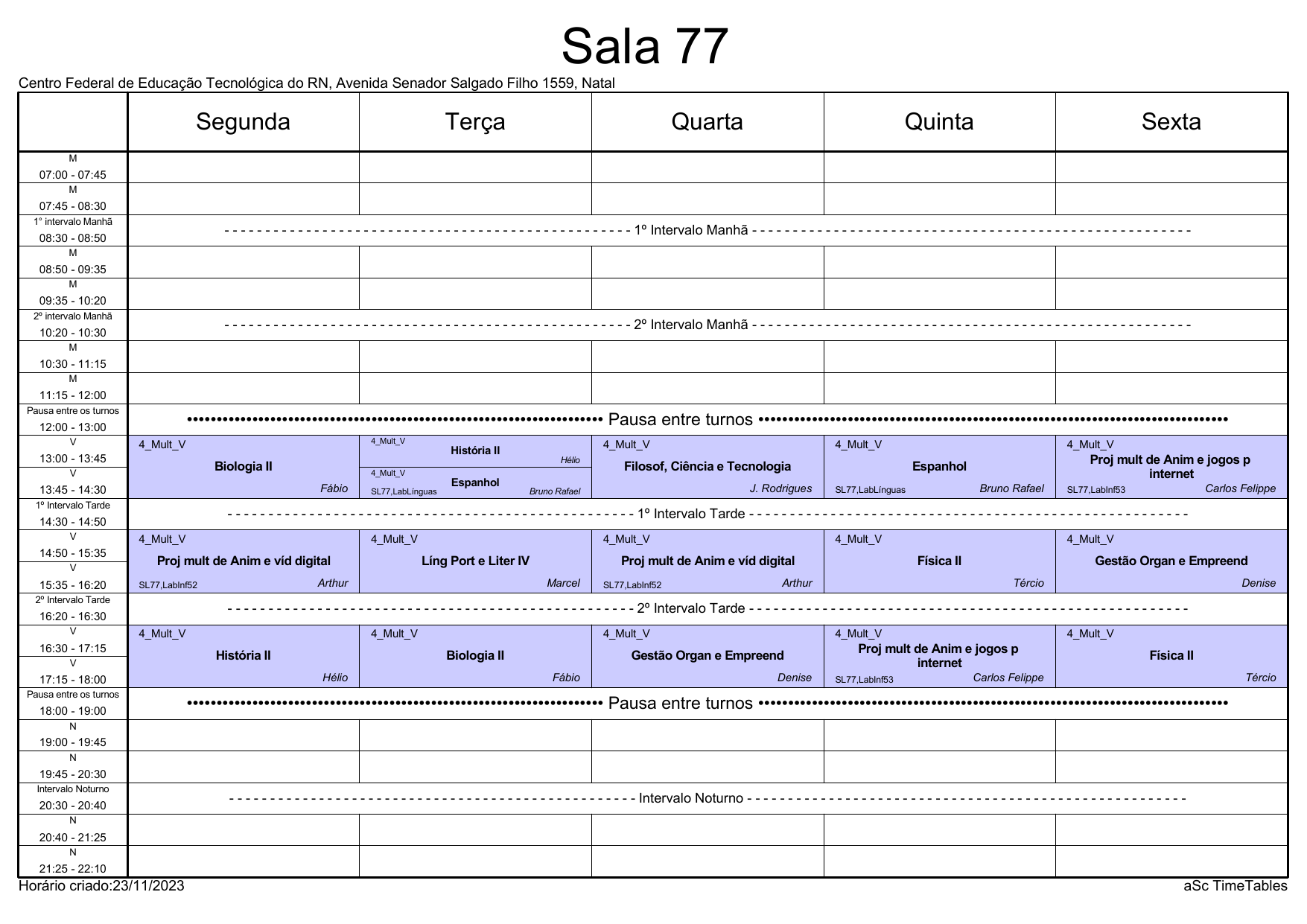 IFRN/CAL: Horário Acadêmico