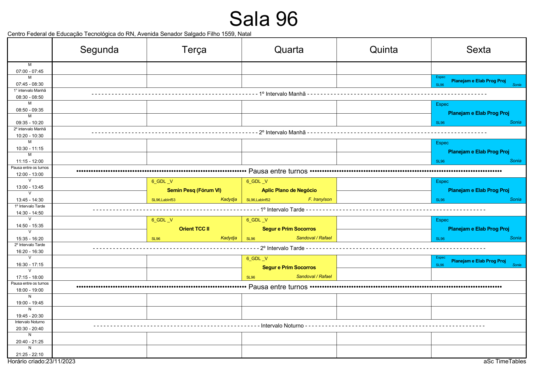IFRN/CAL: Horário Acadêmico
