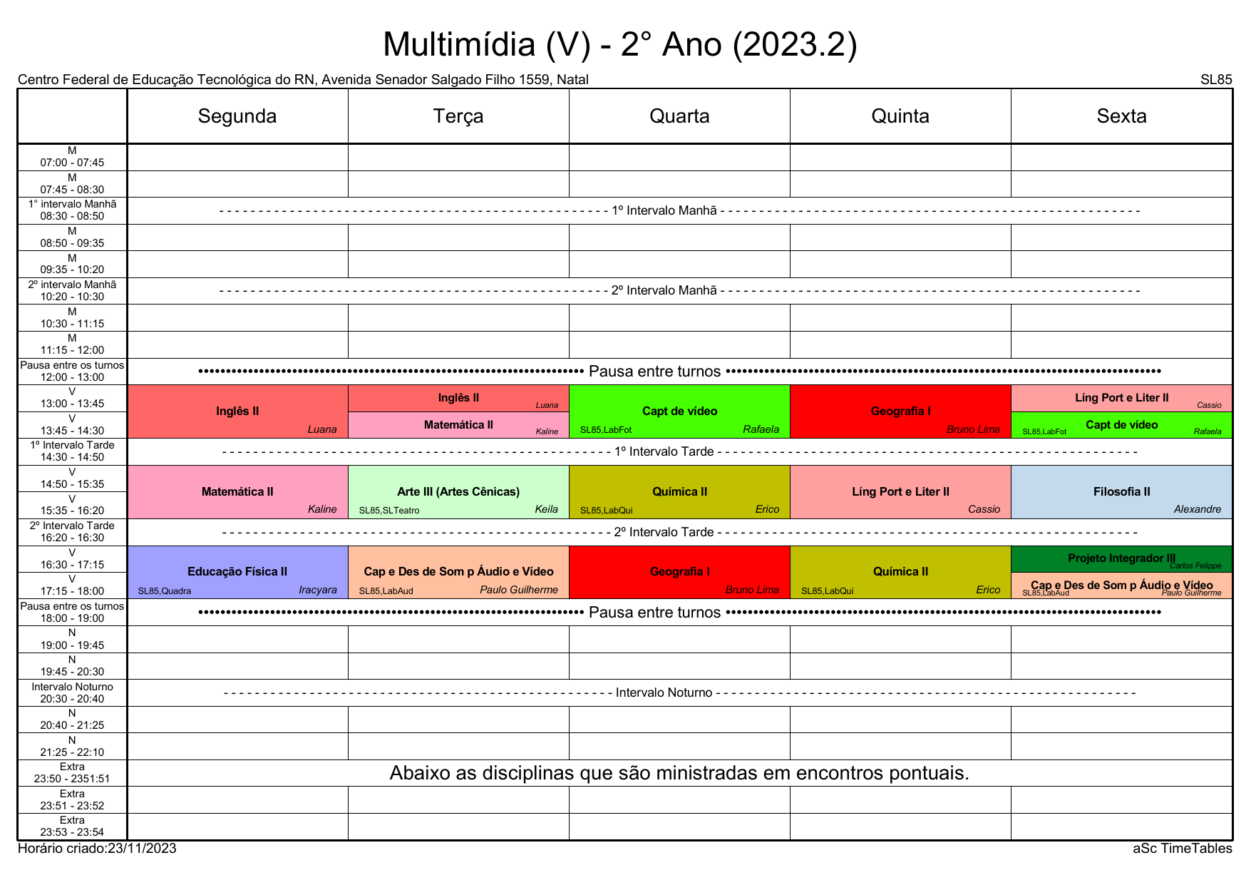 IFRN/CAL: Horário Acadêmico