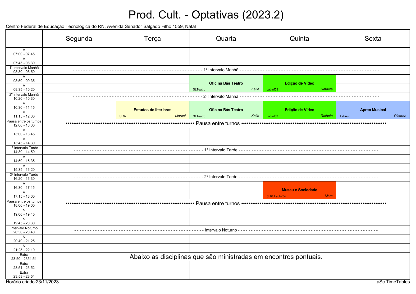 Prod. Cult. - Optativas (2023.2)