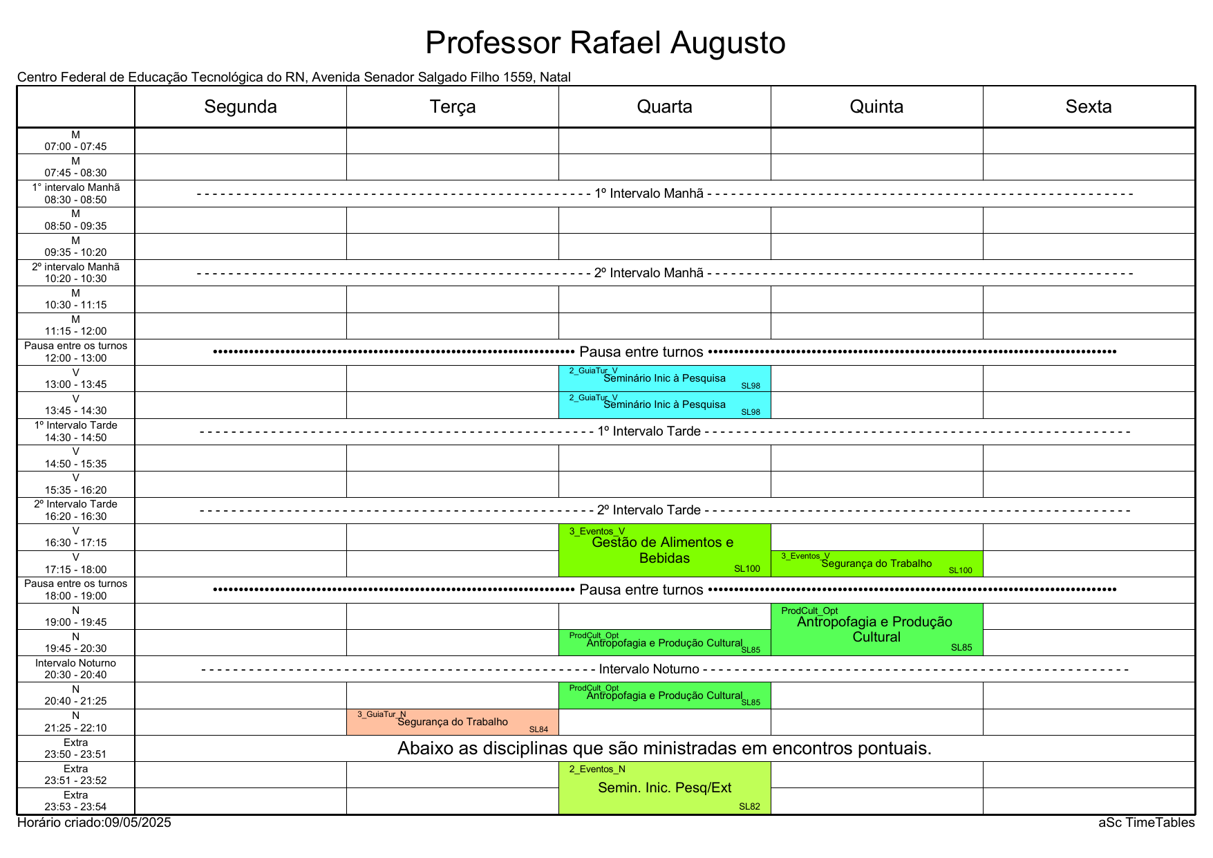 IFRN/Rocas: Horário Acadêmico
