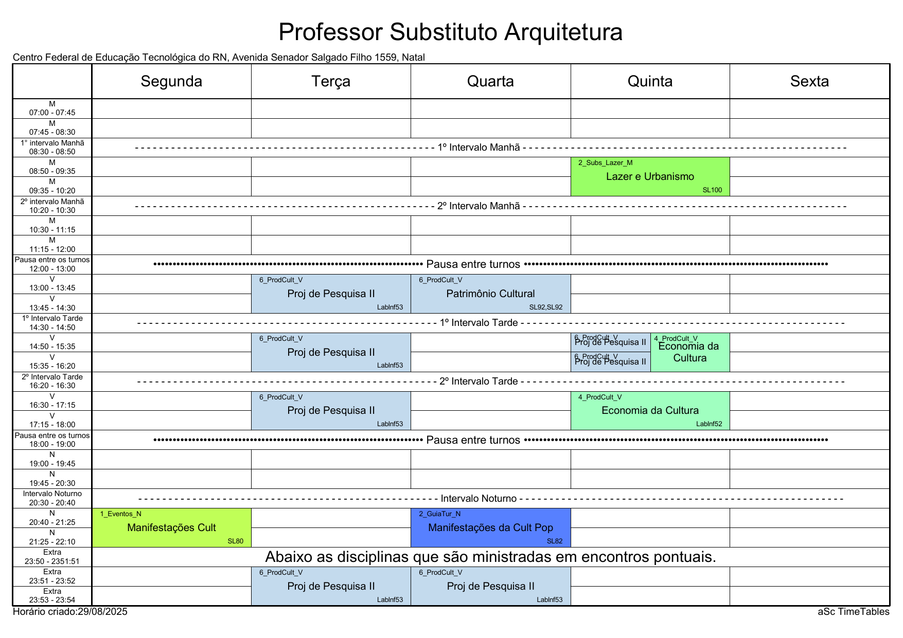 IFRN/Rocas: Horário