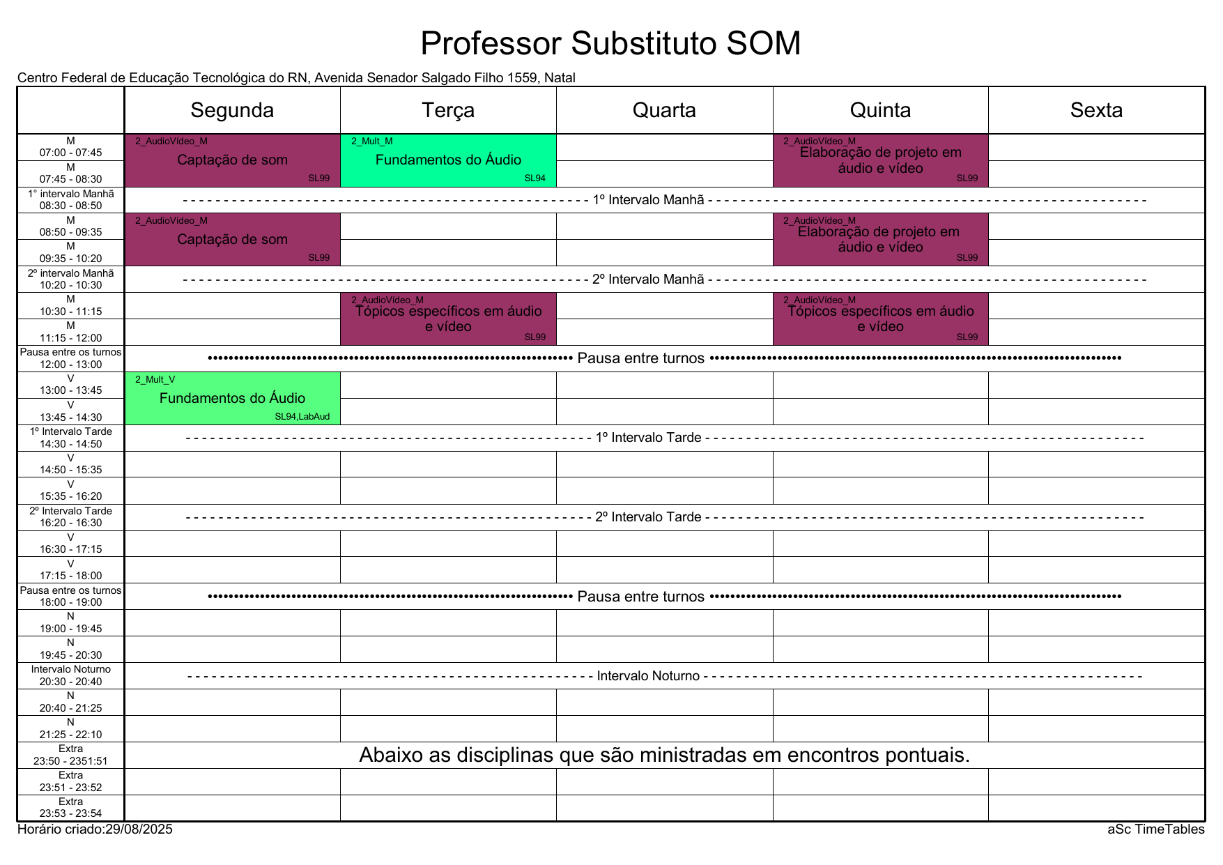IFRN/Rocas: Horário