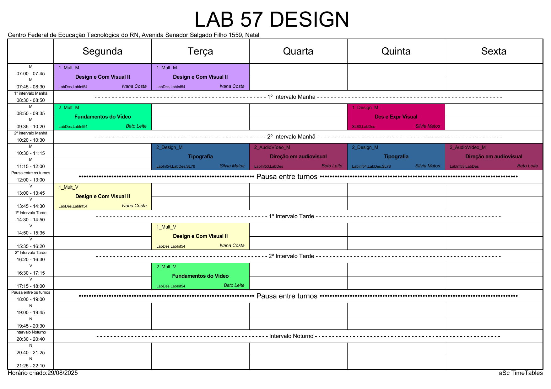 IFRN/Rocas: Horário