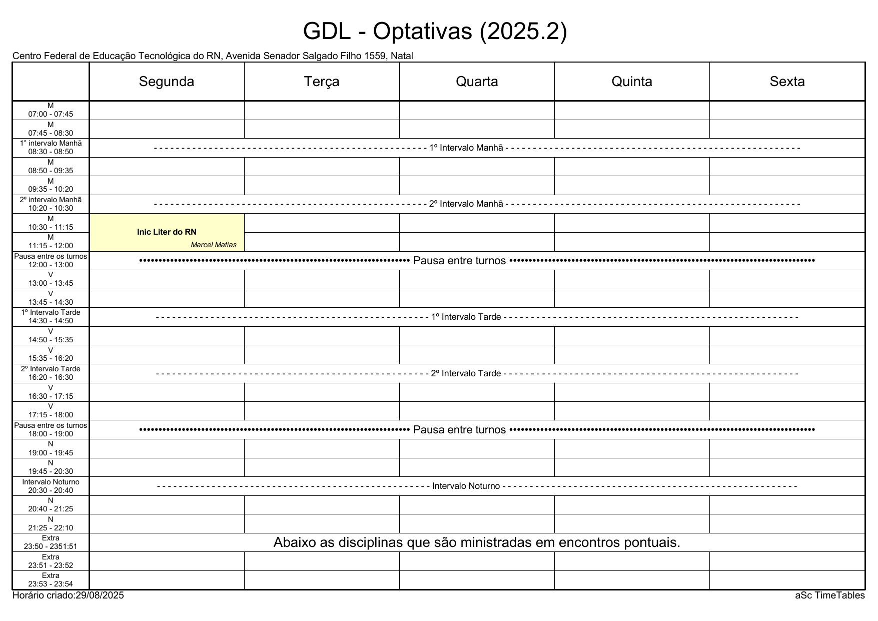 Subs em Lazer (M) - 2° Per. (2025.2)