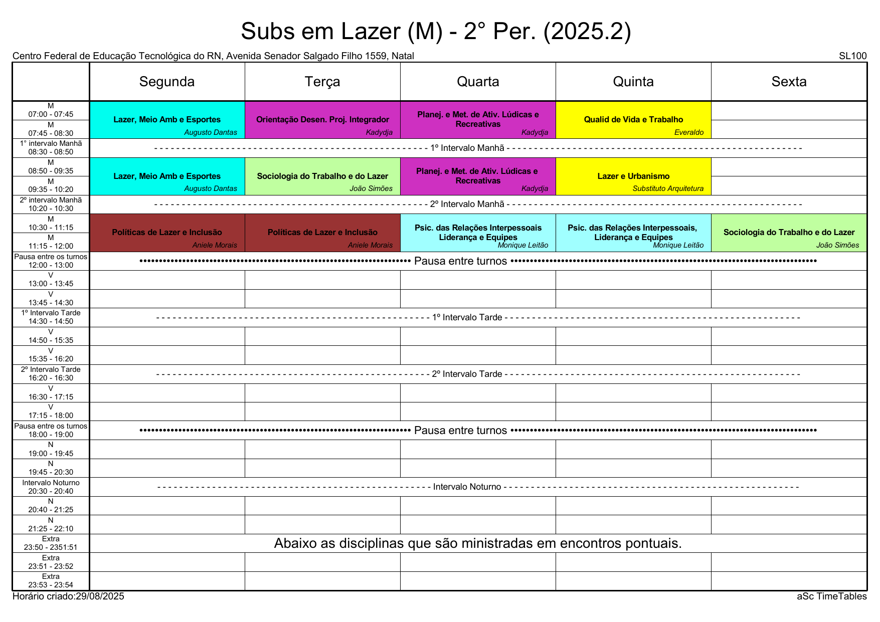 Subs em Lazer (M) - 2° Per. (2025.2)