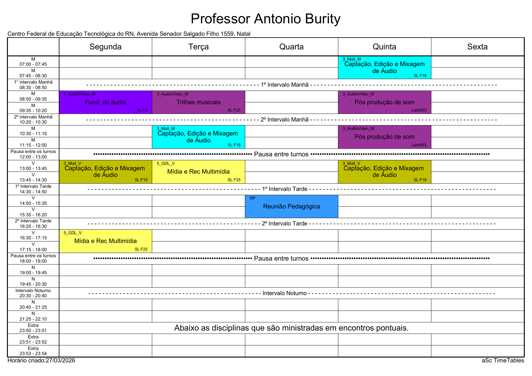 IFRN/Rocas: Horário