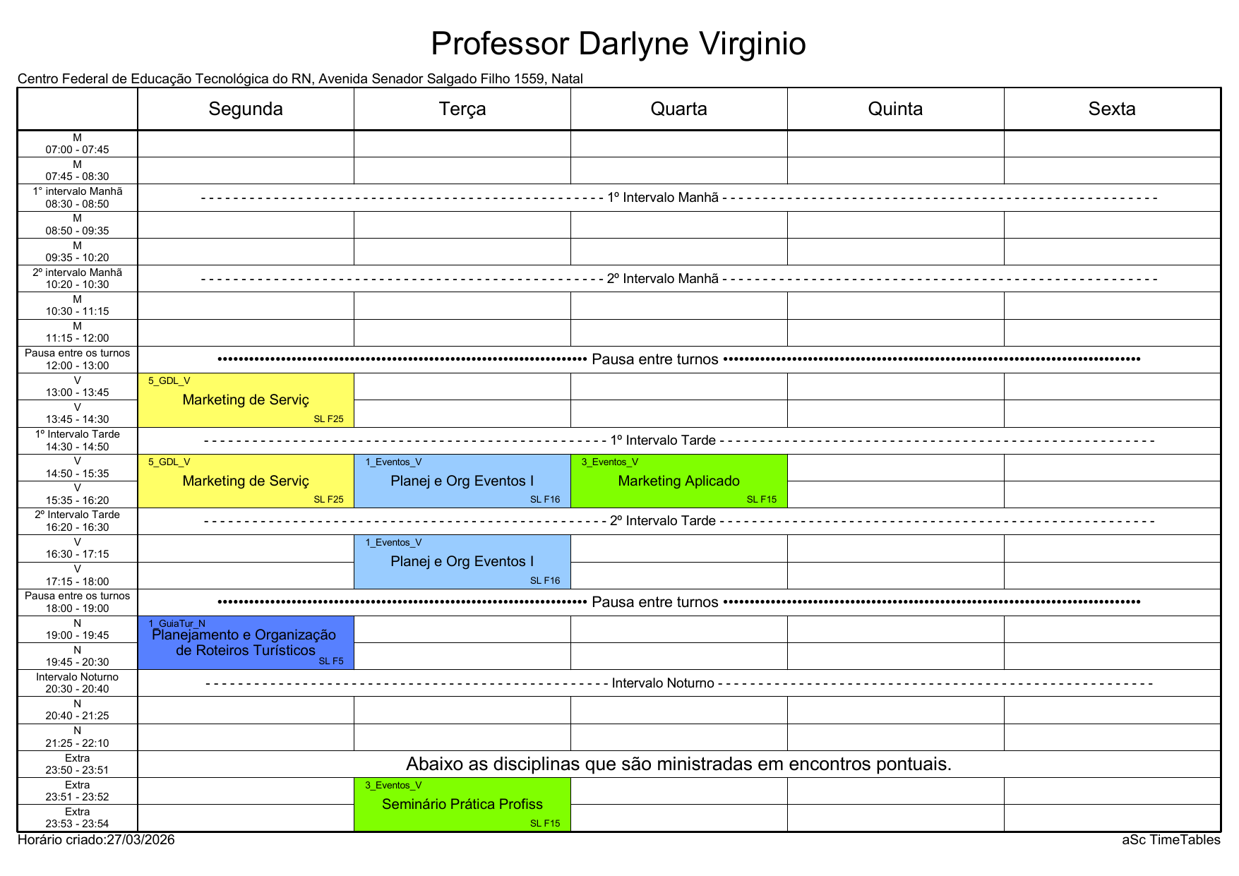 IFRN/Rocas: Horário