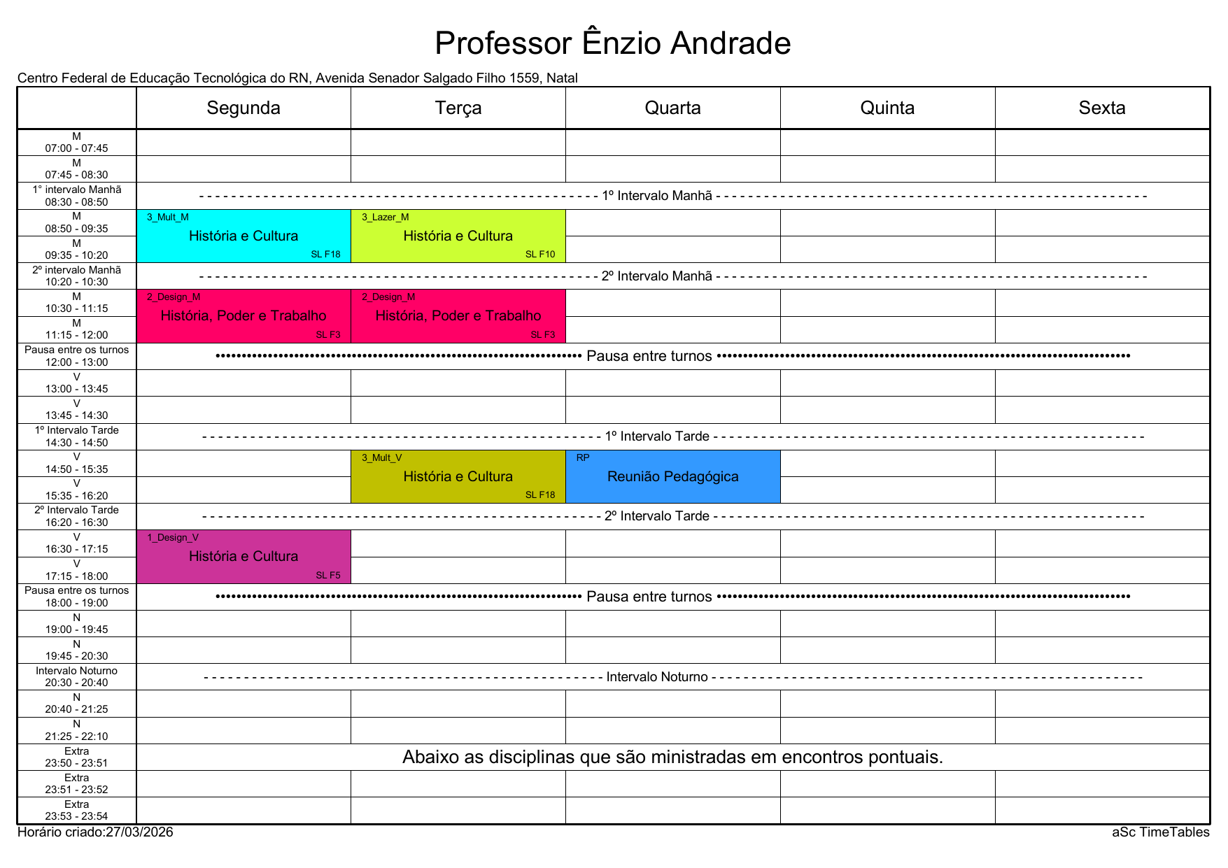 IFRN/Rocas: Horário