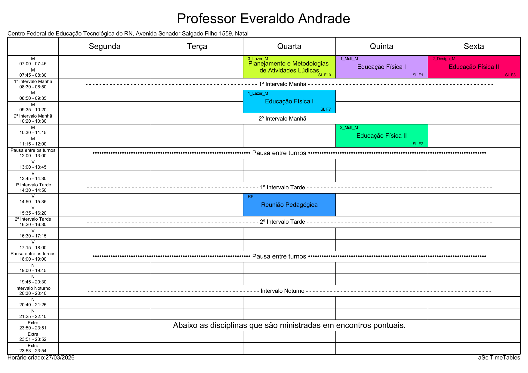 IFRN/Rocas: Horário