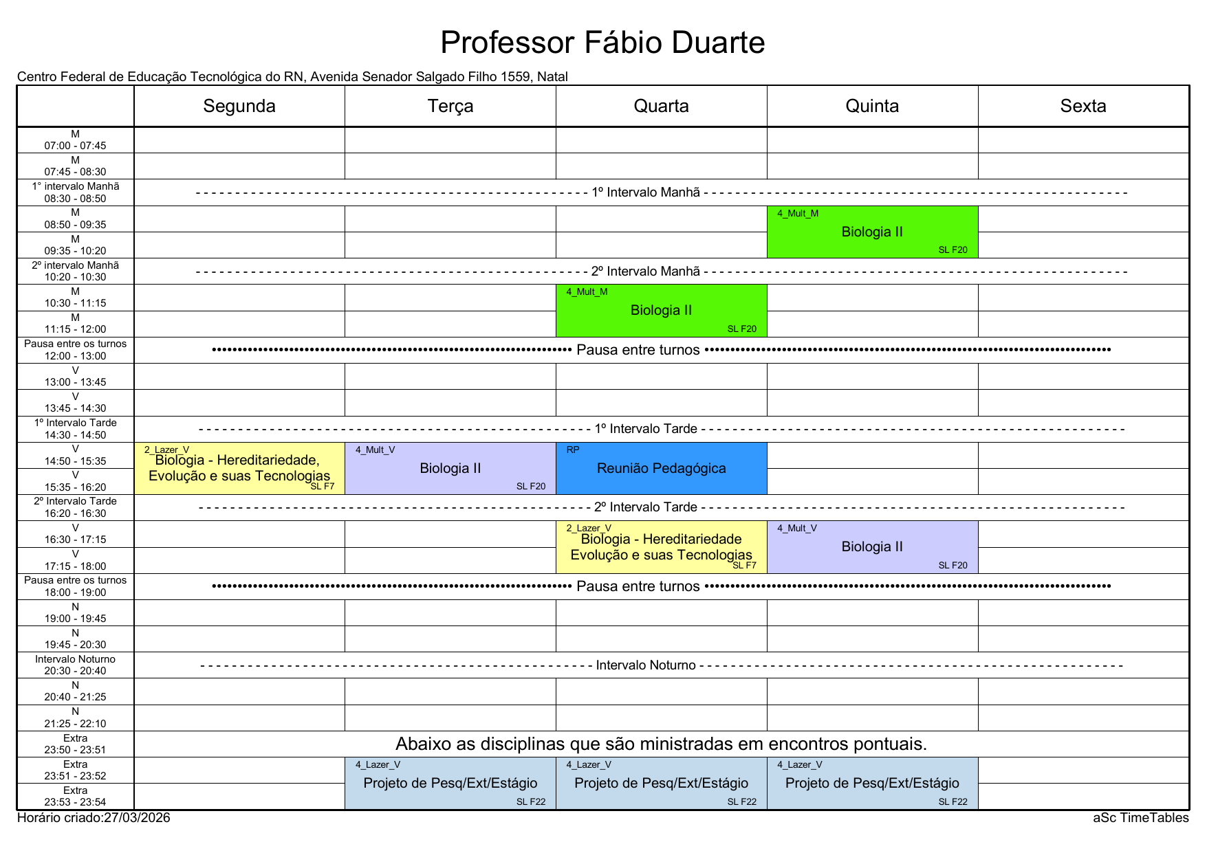 IFRN/Rocas: Horário