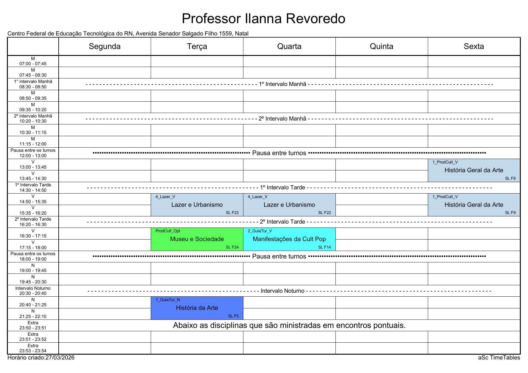 IFRN/Rocas: Horário