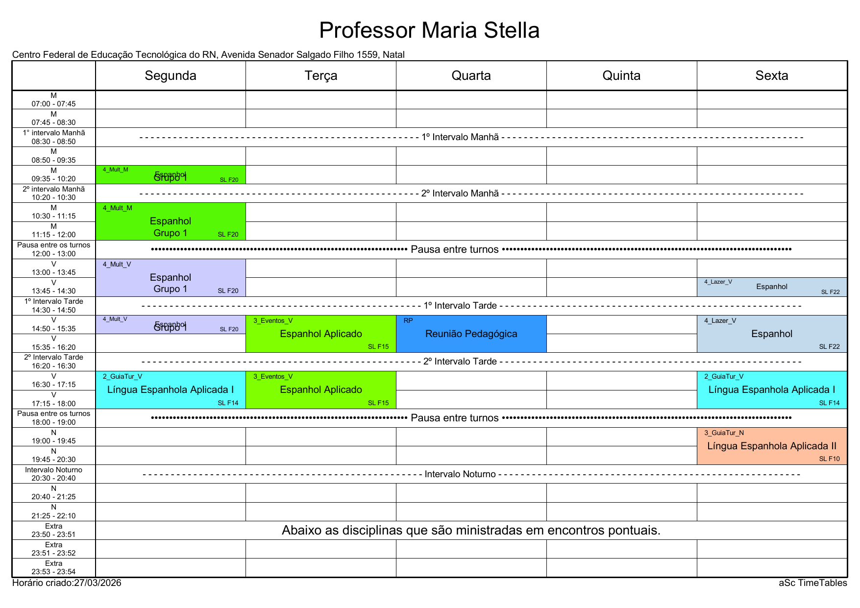 IFRN/Rocas: Horário
