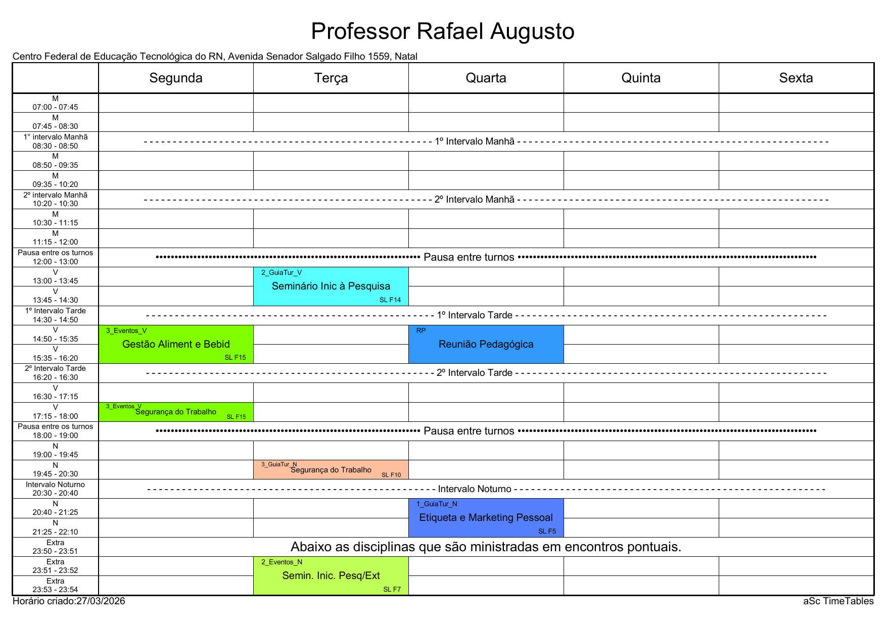 IFRN/Rocas: Horário