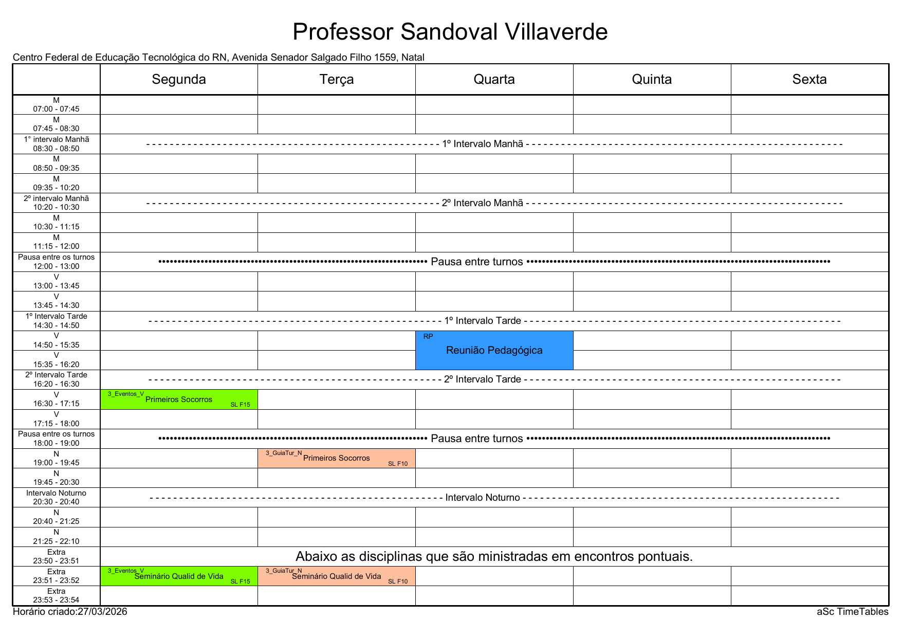 IFRN/Rocas: Horário