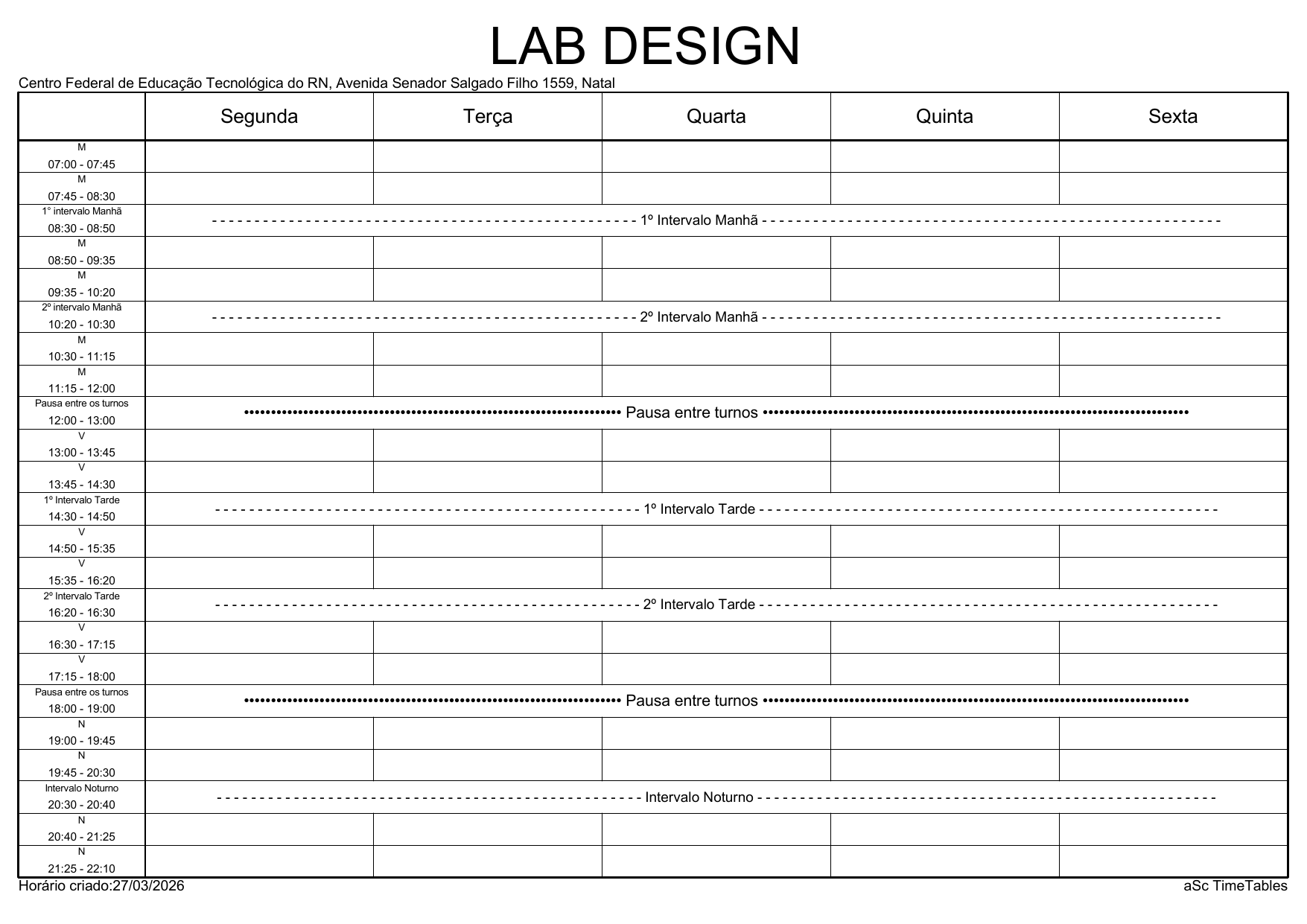 IFRN/Rocas: Horário