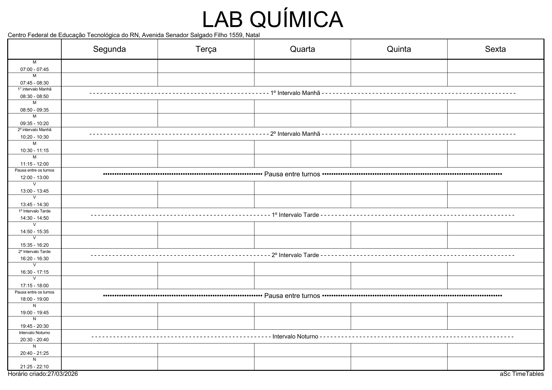 IFRN/Rocas: Horário