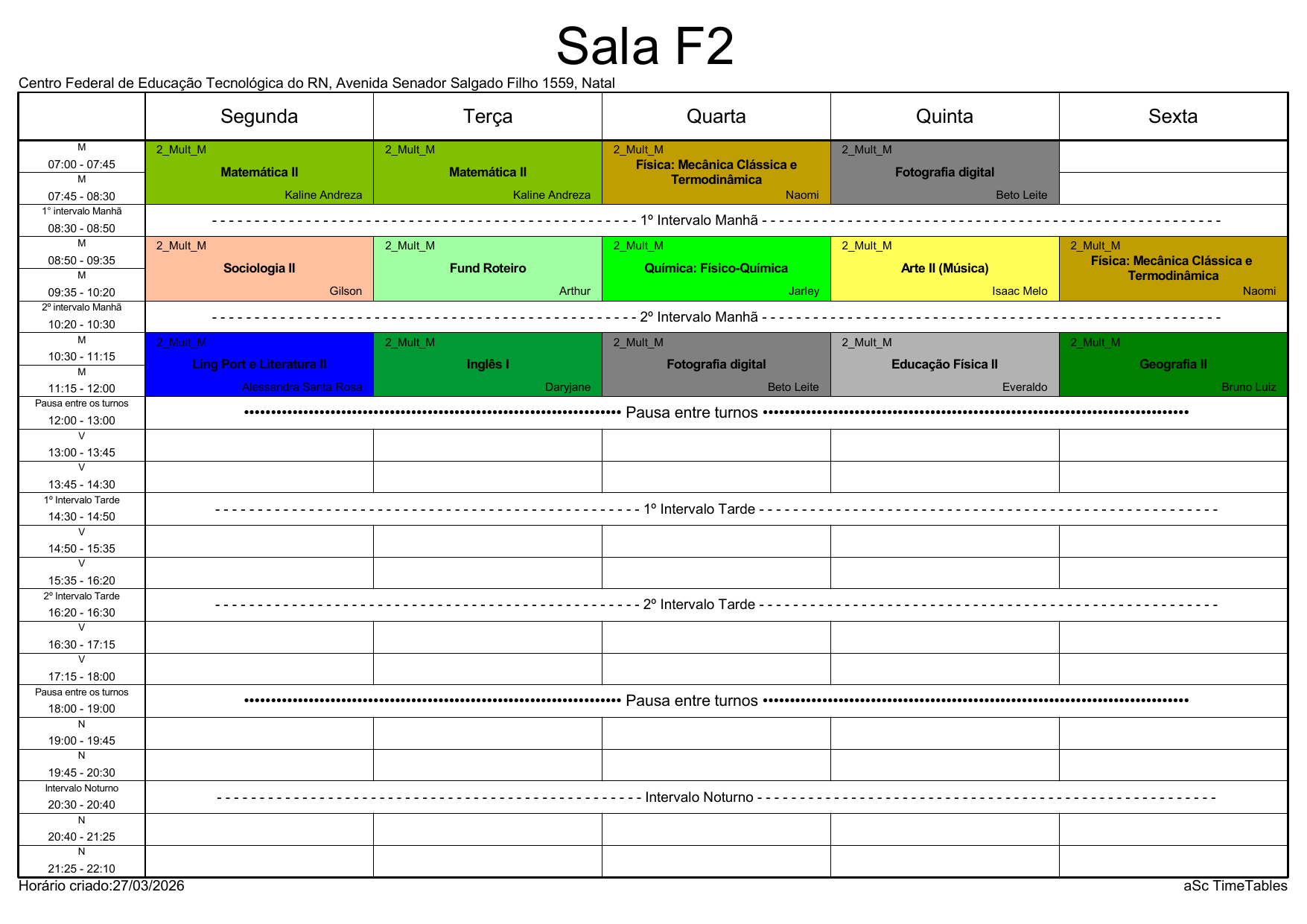 IFRN/Rocas: Horário