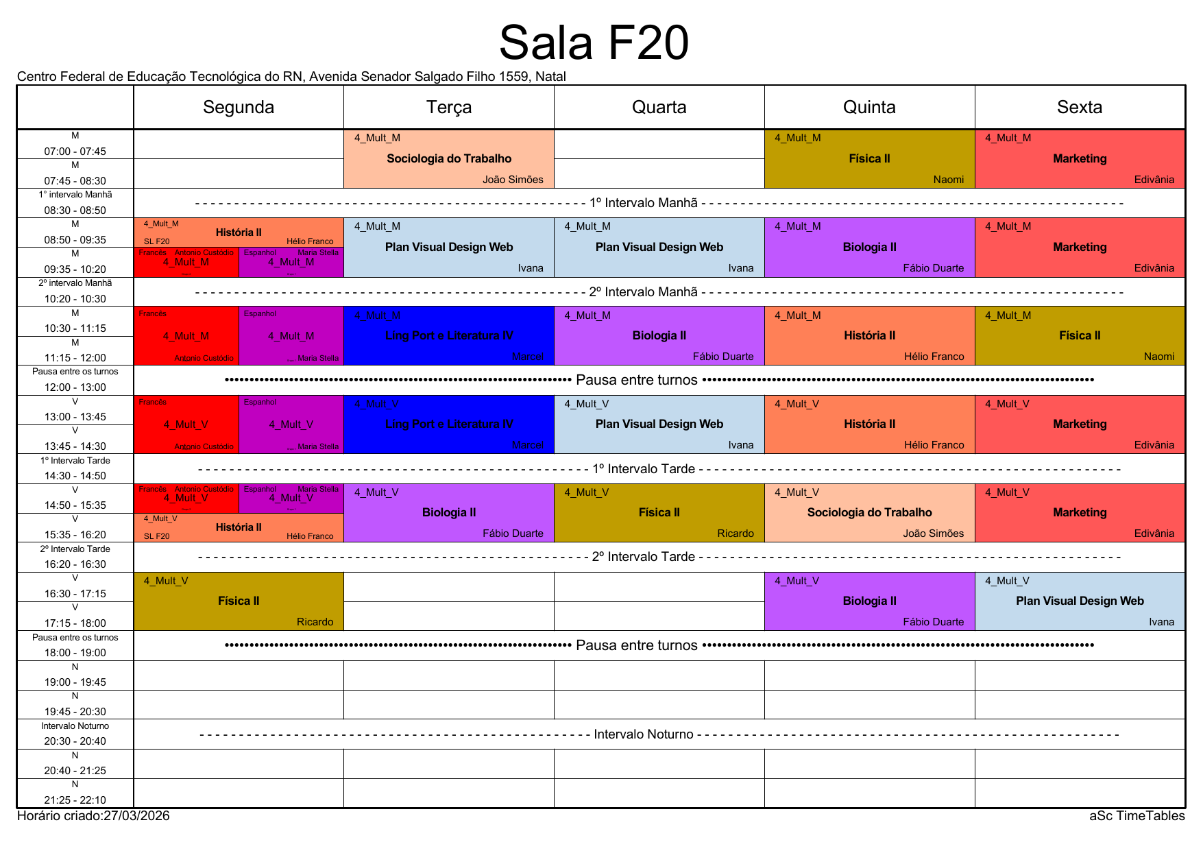IFRN/Rocas: Horário