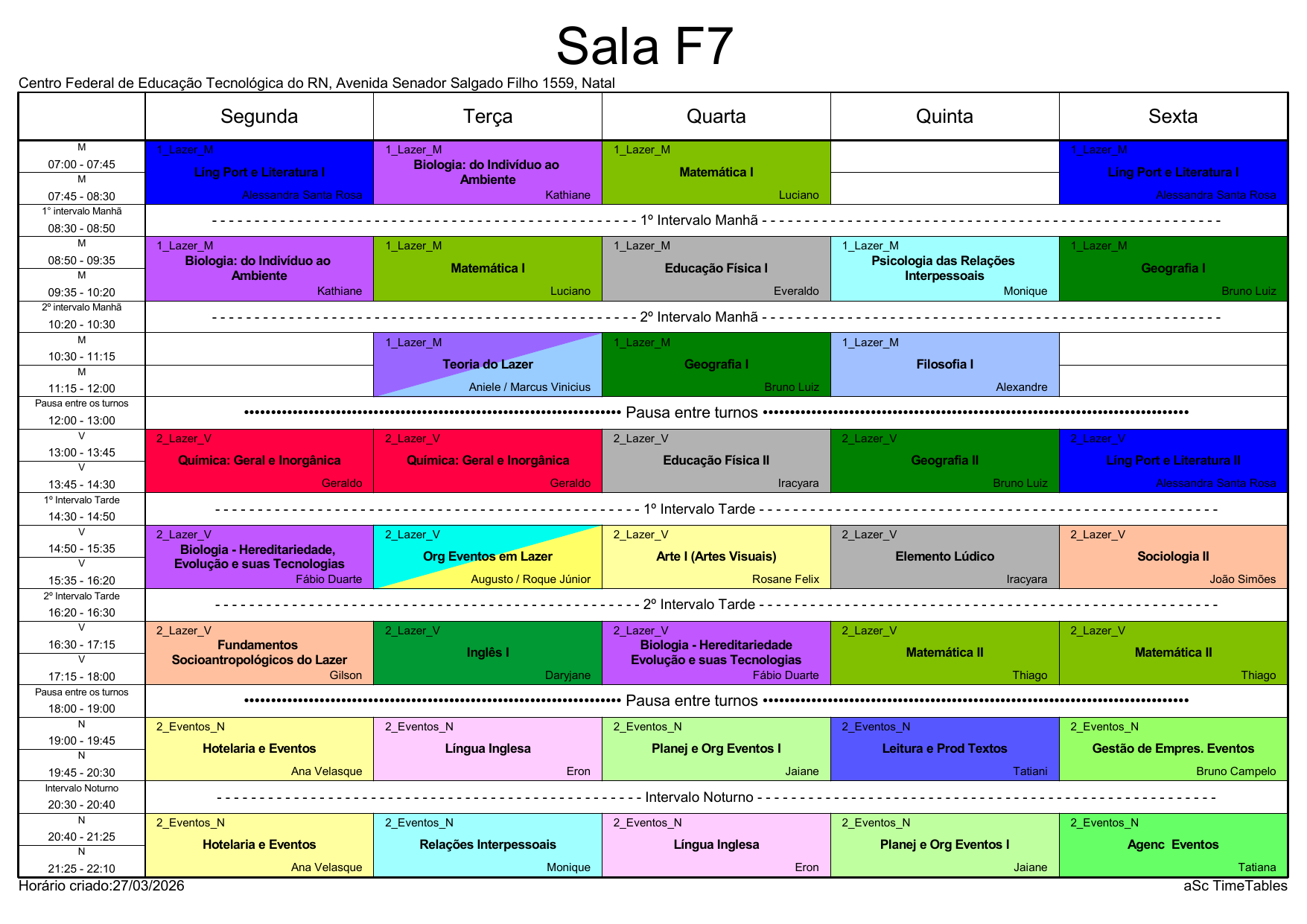 IFRN/Rocas: Horário