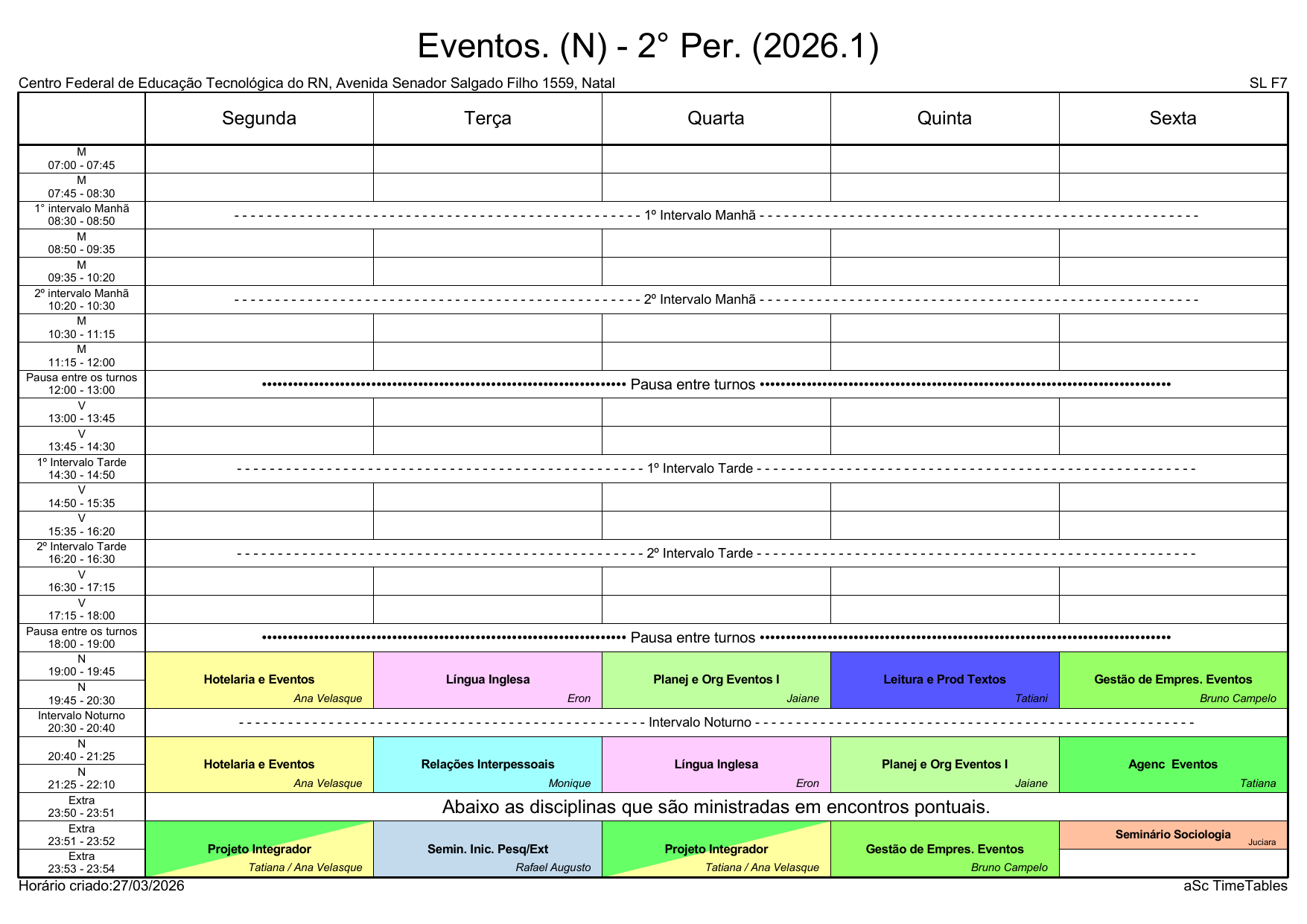IFRN/Rocas: Horário