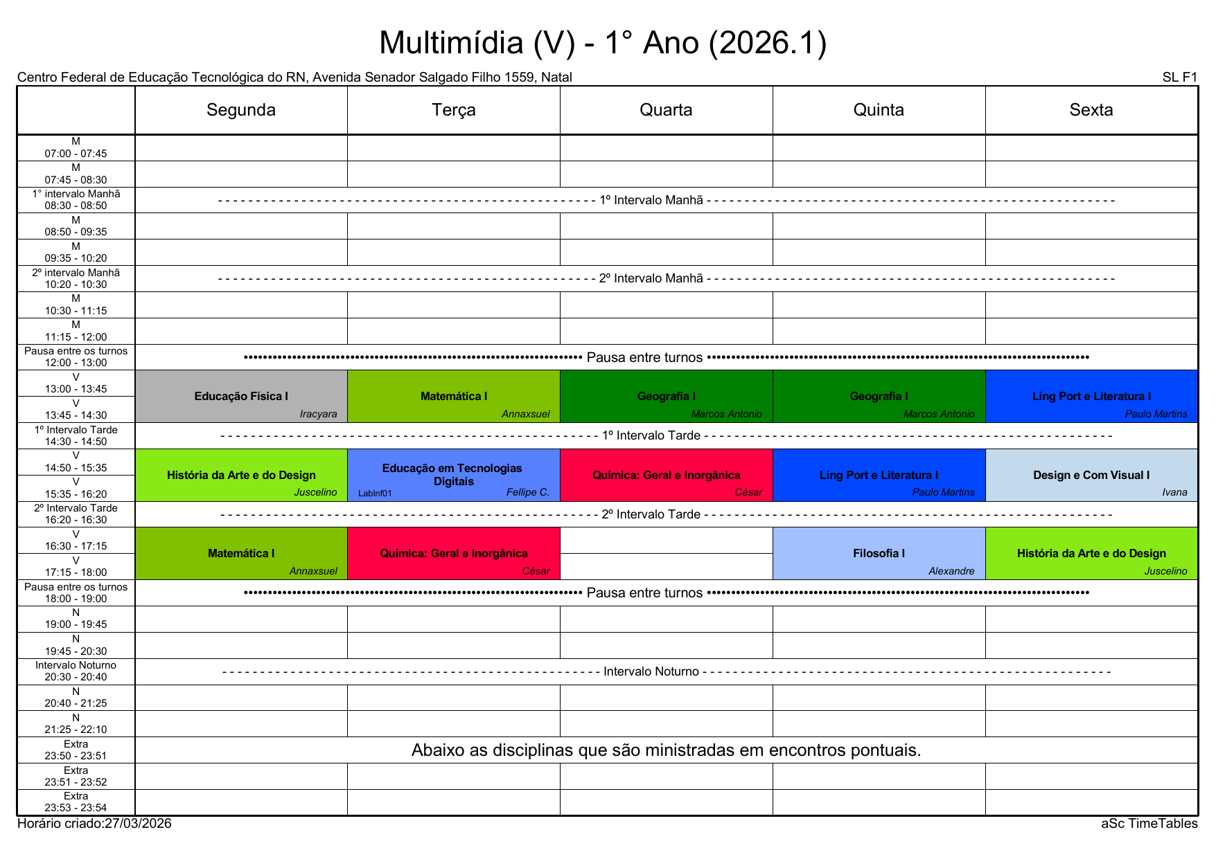 Produção em Audio e Vídeo (M) - 1° Per. (2026.1)