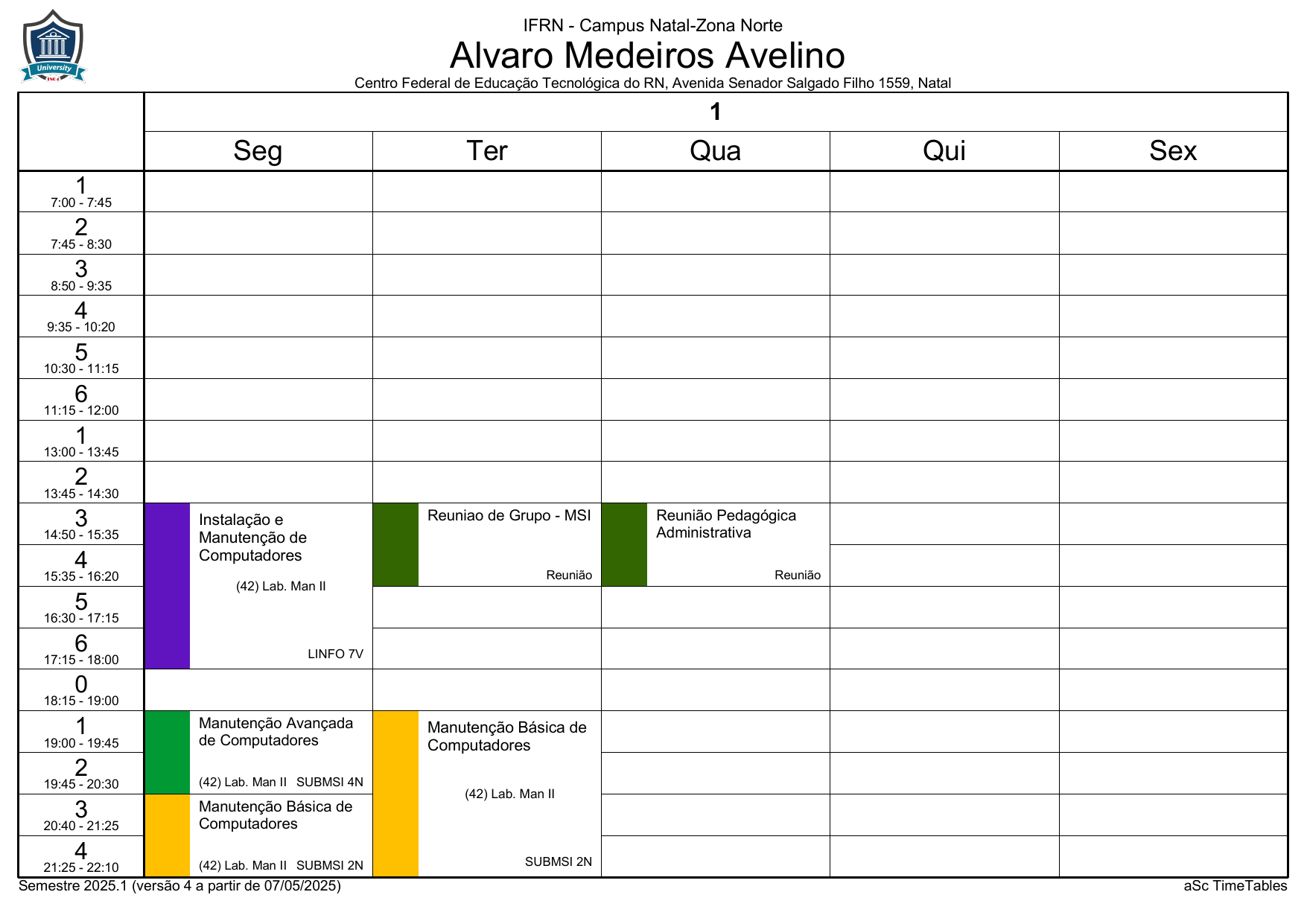 IFRN/ZN: Horário Acadêmico