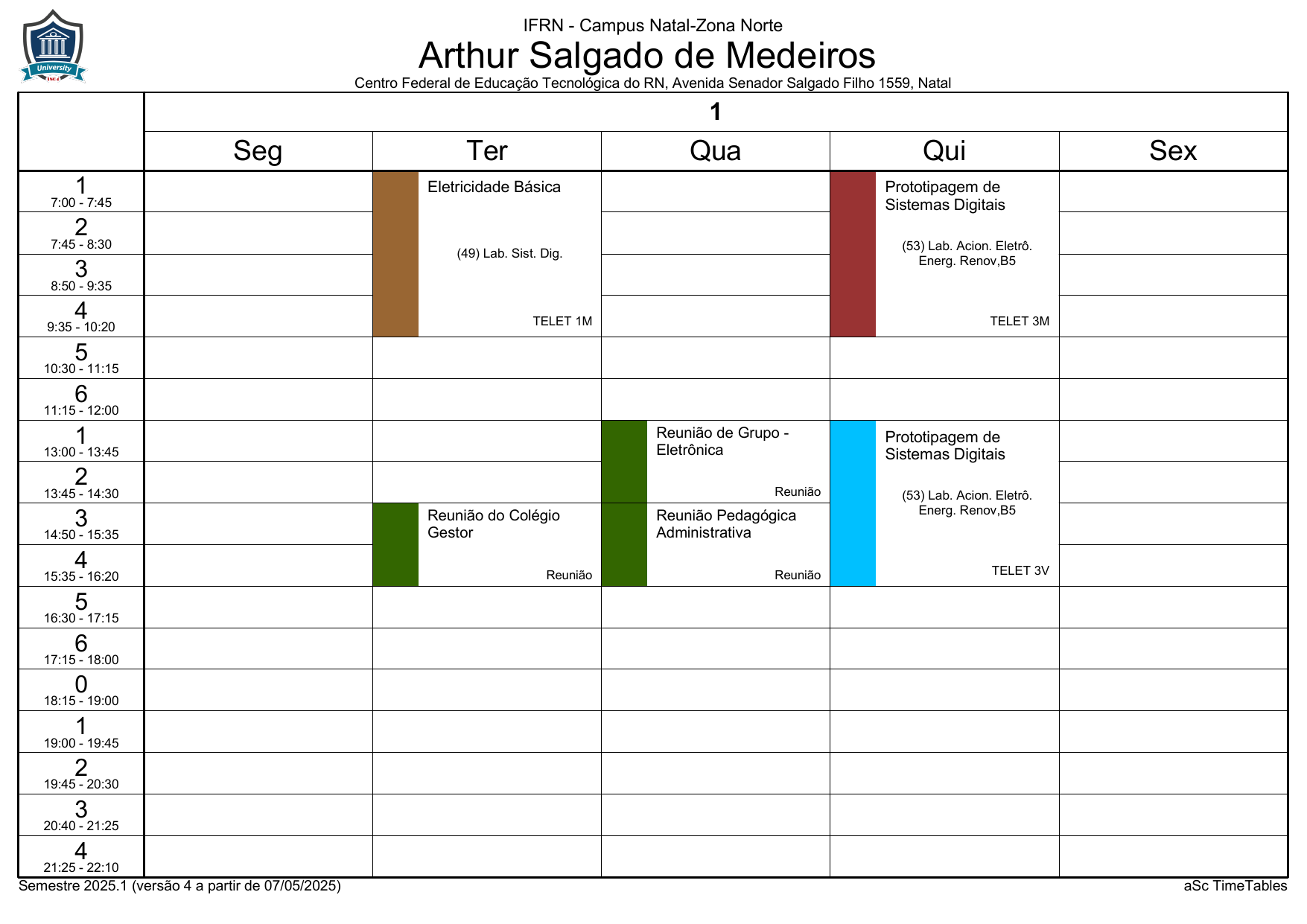 IFRN/ZN: Horário Acadêmico