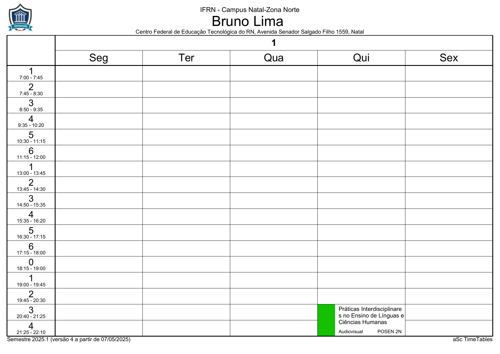 IFRN/ZN: Horário Acadêmico