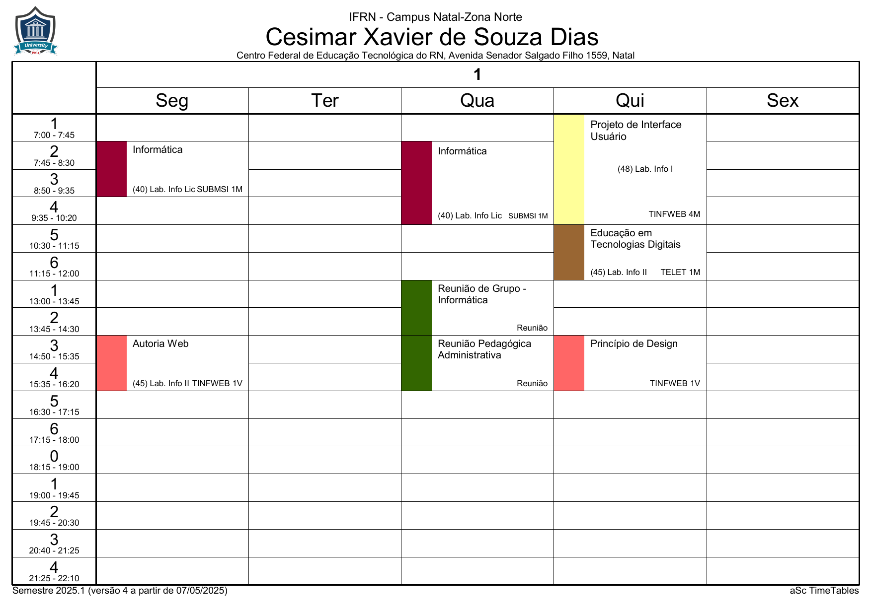 IFRN/ZN: Horário Acadêmico