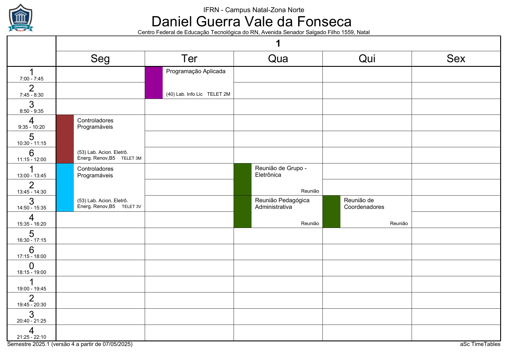 IFRN/ZN: Horário Acadêmico