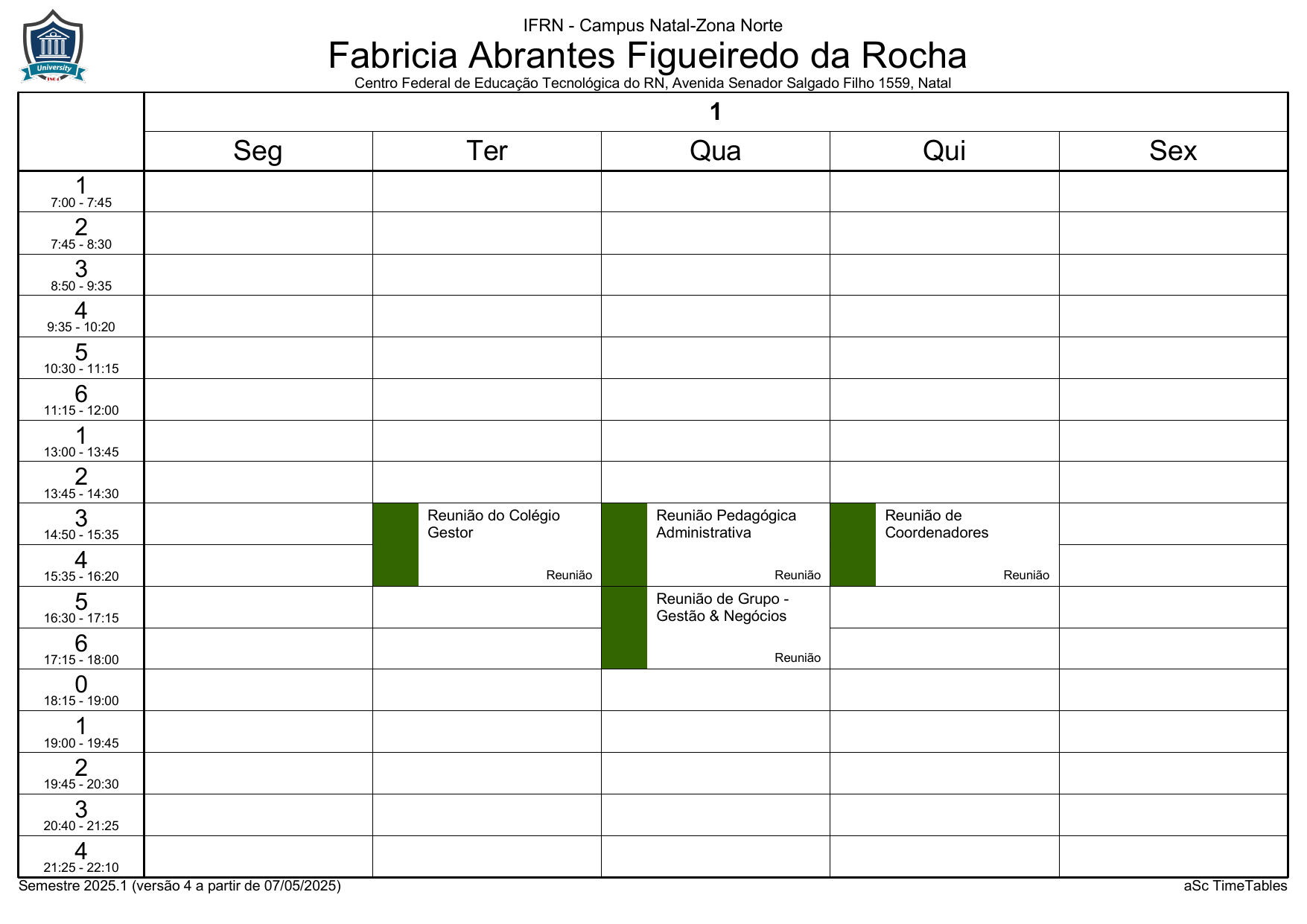 IFRN/ZN: Horário Acadêmico