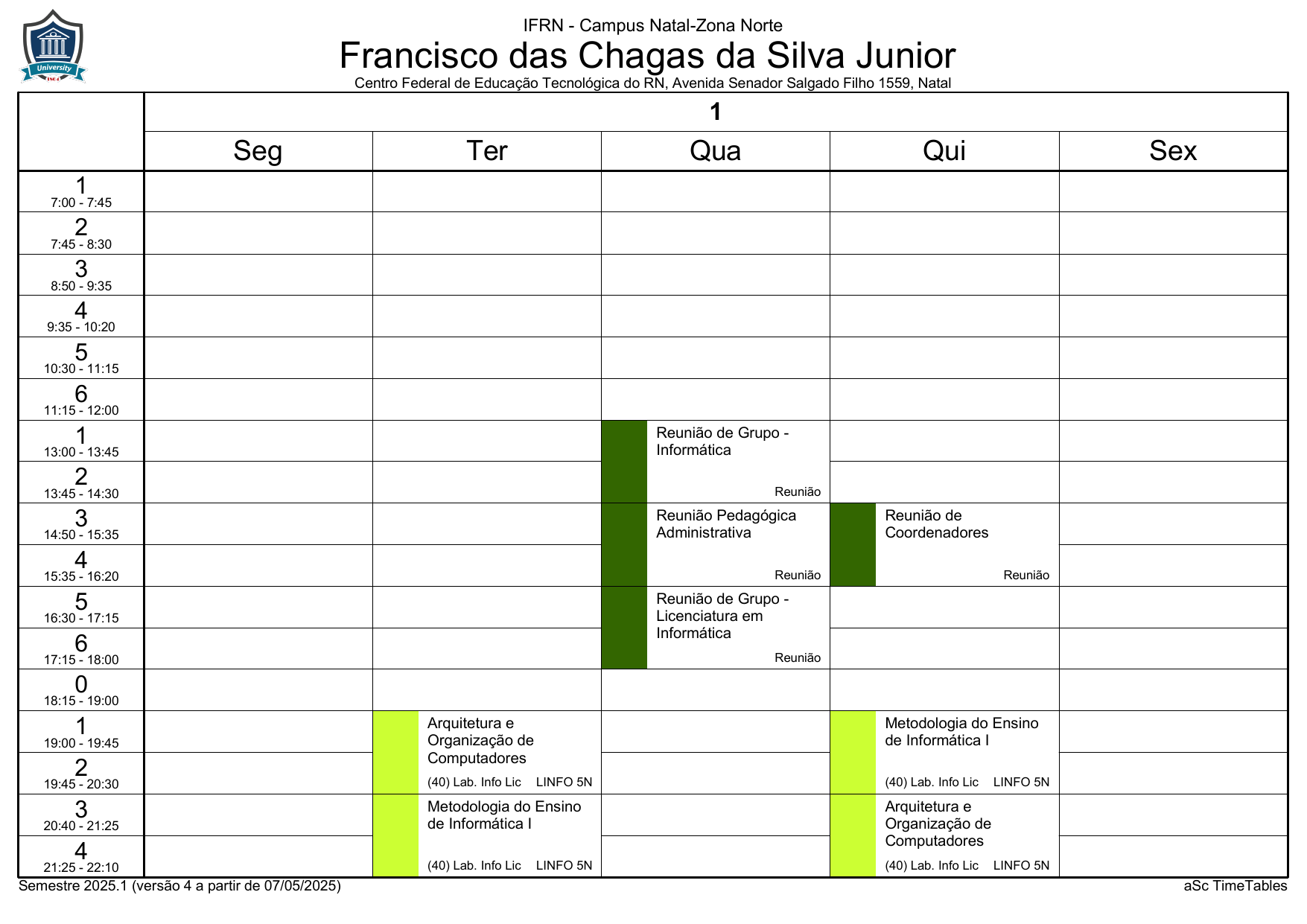 IFRN/ZN: Horário Acadêmico