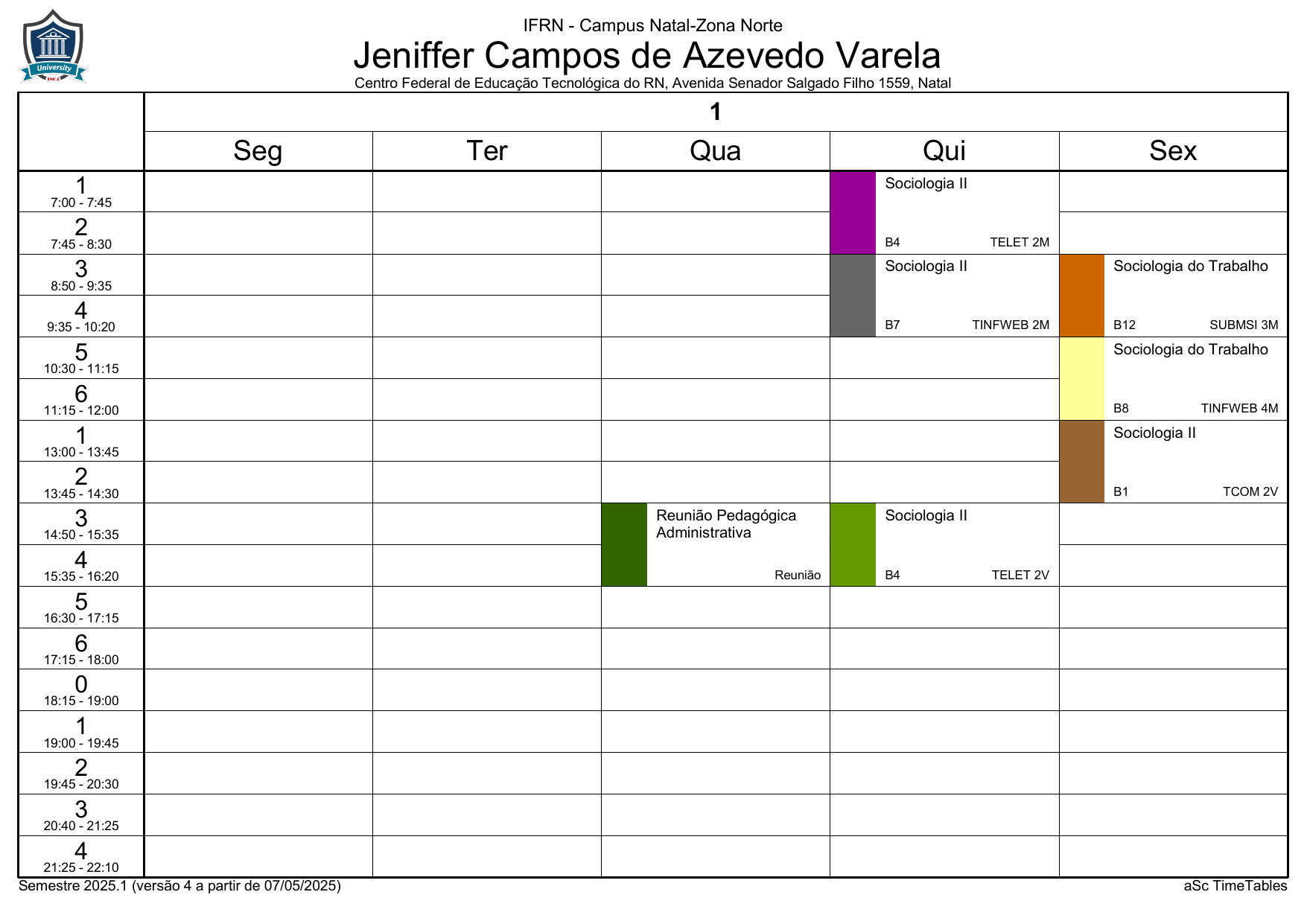 IFRN/ZN: Horário Acadêmico