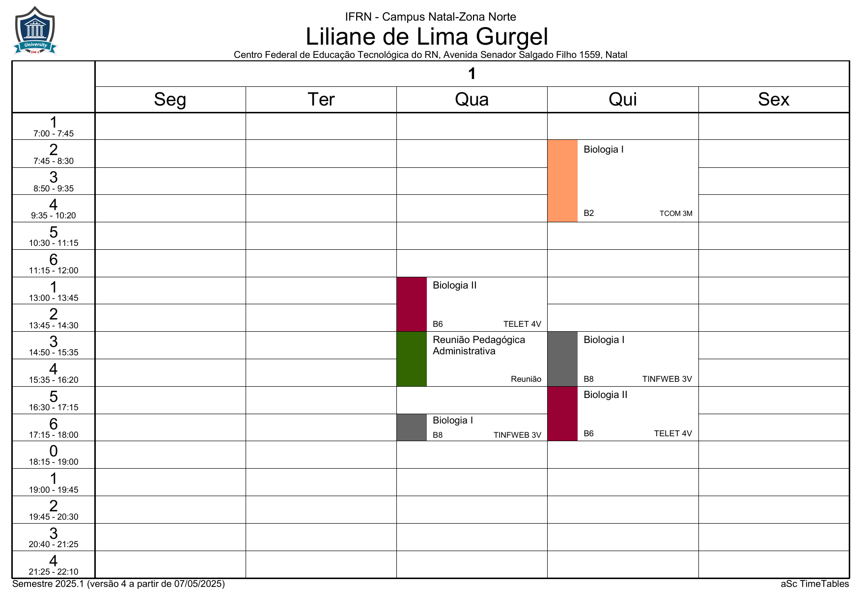 IFRN/ZN: Horário Acadêmico