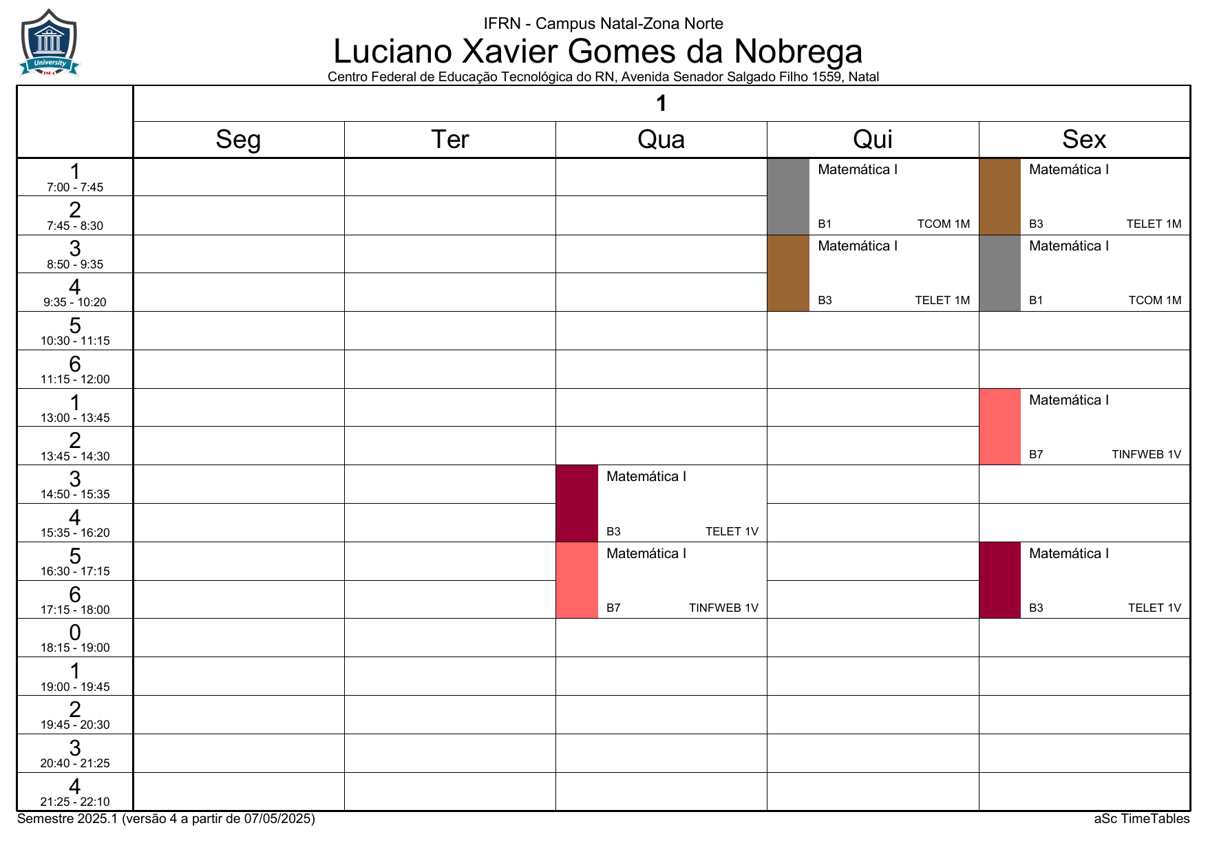 IFRN/ZN: Horário Acadêmico